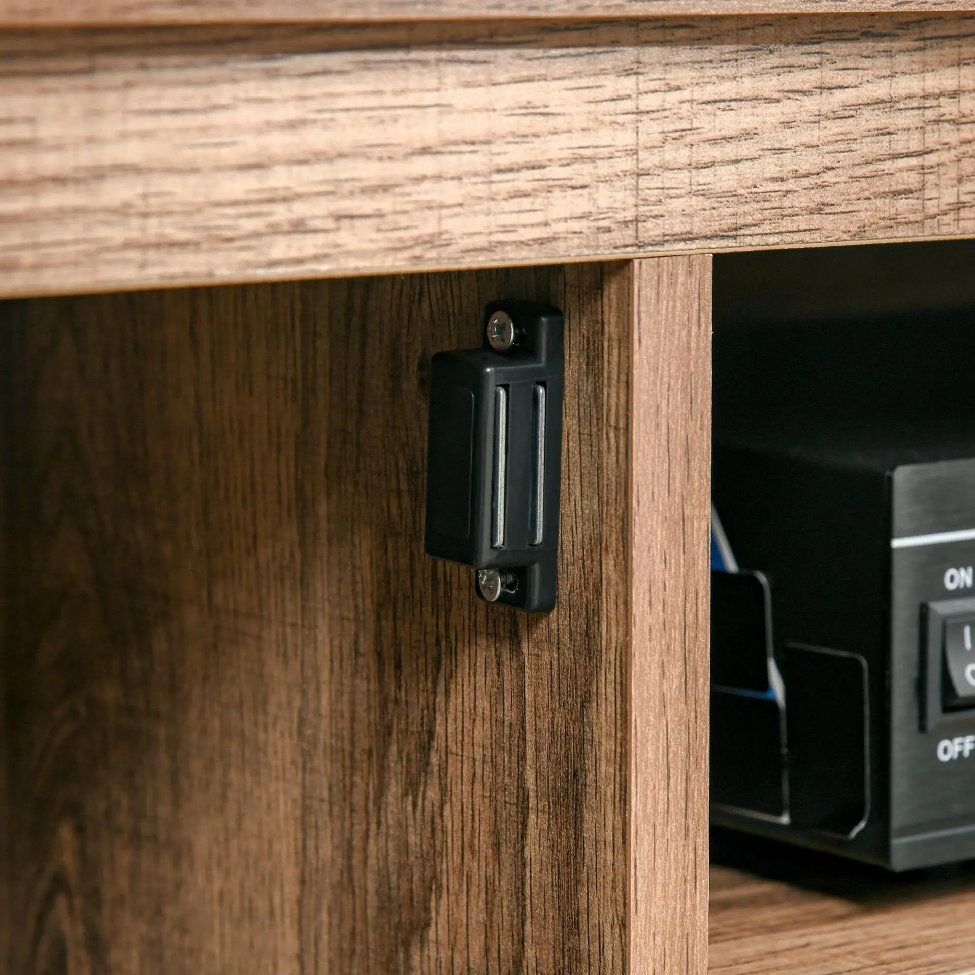 MUEBLE DE TV RESISTENTE: Mueble TV estrecho con estructura de melamina de madera y puertas metálicas. Con una gran capacidad de carga, soporta hasta 40 kg de peso. La base del mueble queda ligeramente elevada del suelo a 8 cm de distancia, ideal para poder limpiar cómodamente el suelo
