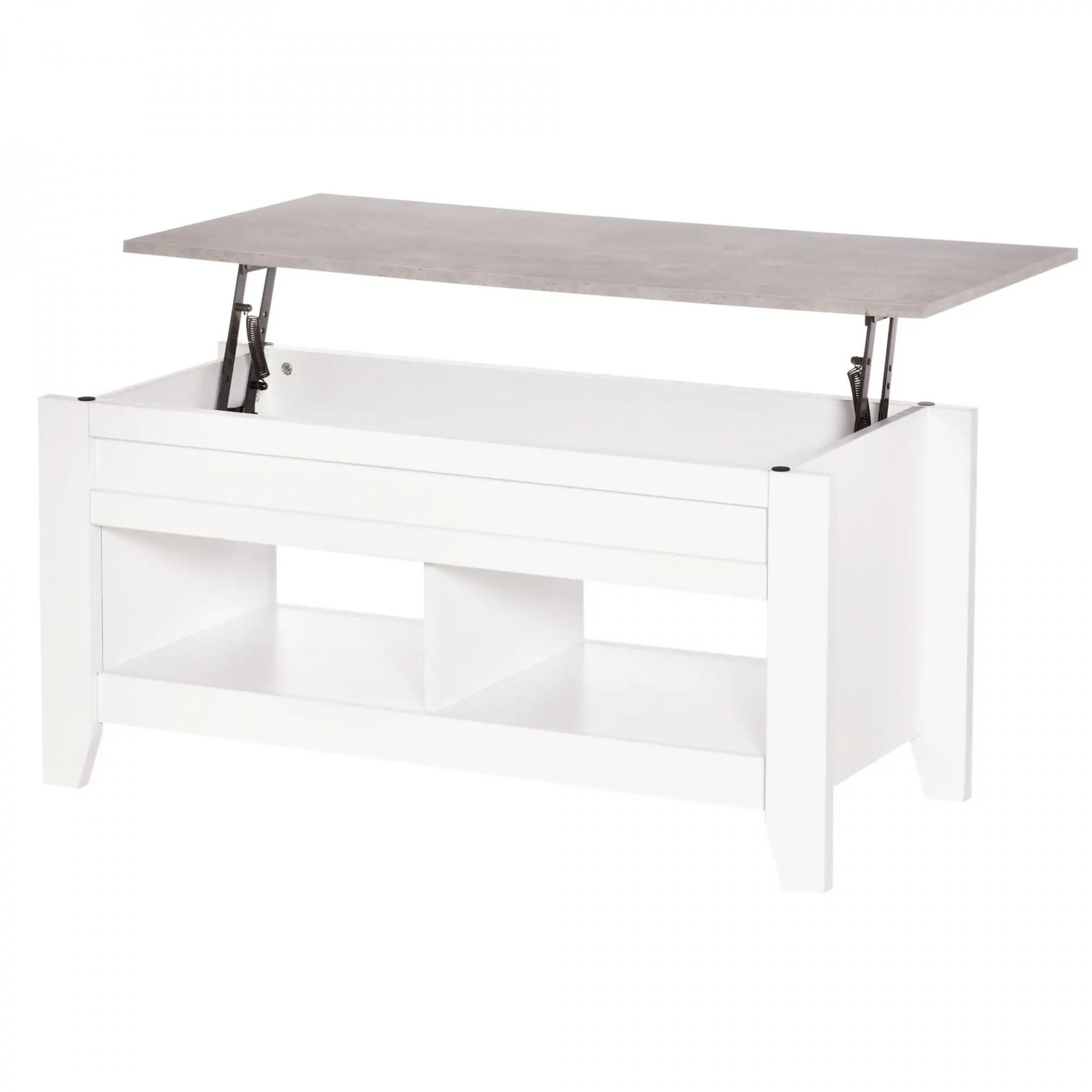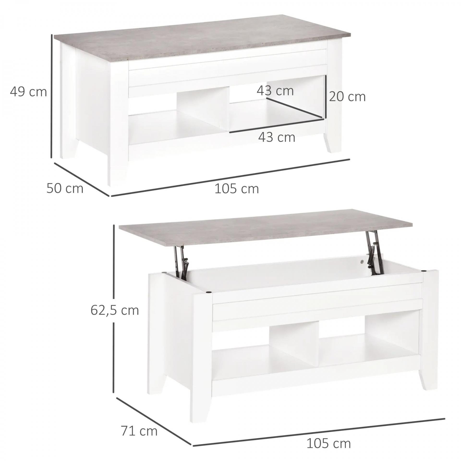 Mesa de Centro Elevable Mesa de Café con Encimera Elevable 2 Compartimentos Abiertos y Espacio Oculto de Almacenaje 105x50x49 cm Blanco y Efecto Mármol