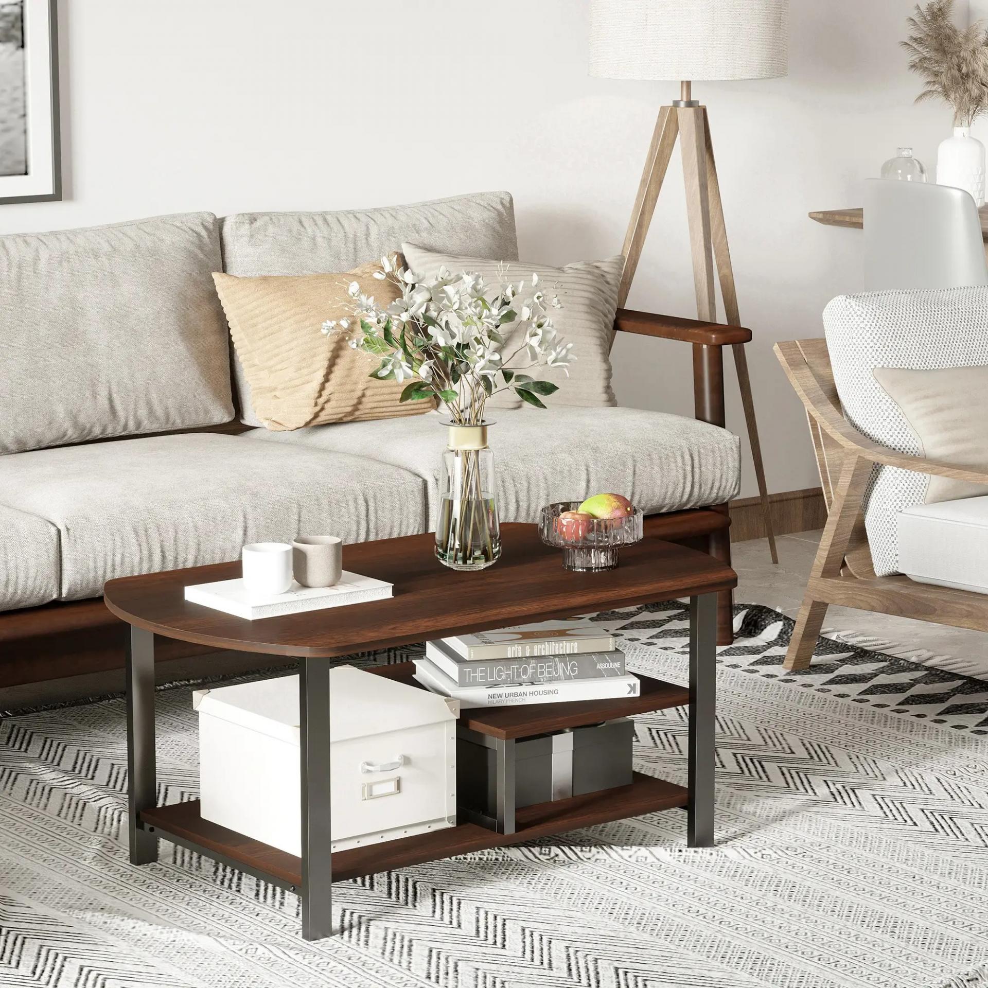 - RESISTENTE Y DURADERA: Mesa de centro hecha de aglomerado de madera grueso con superficie laminada, que es fácil de limpiar. Sus patas y soporte para el estante del medio de metal resistente en color negro proporcionan una gran estabilidad y durabilidad.