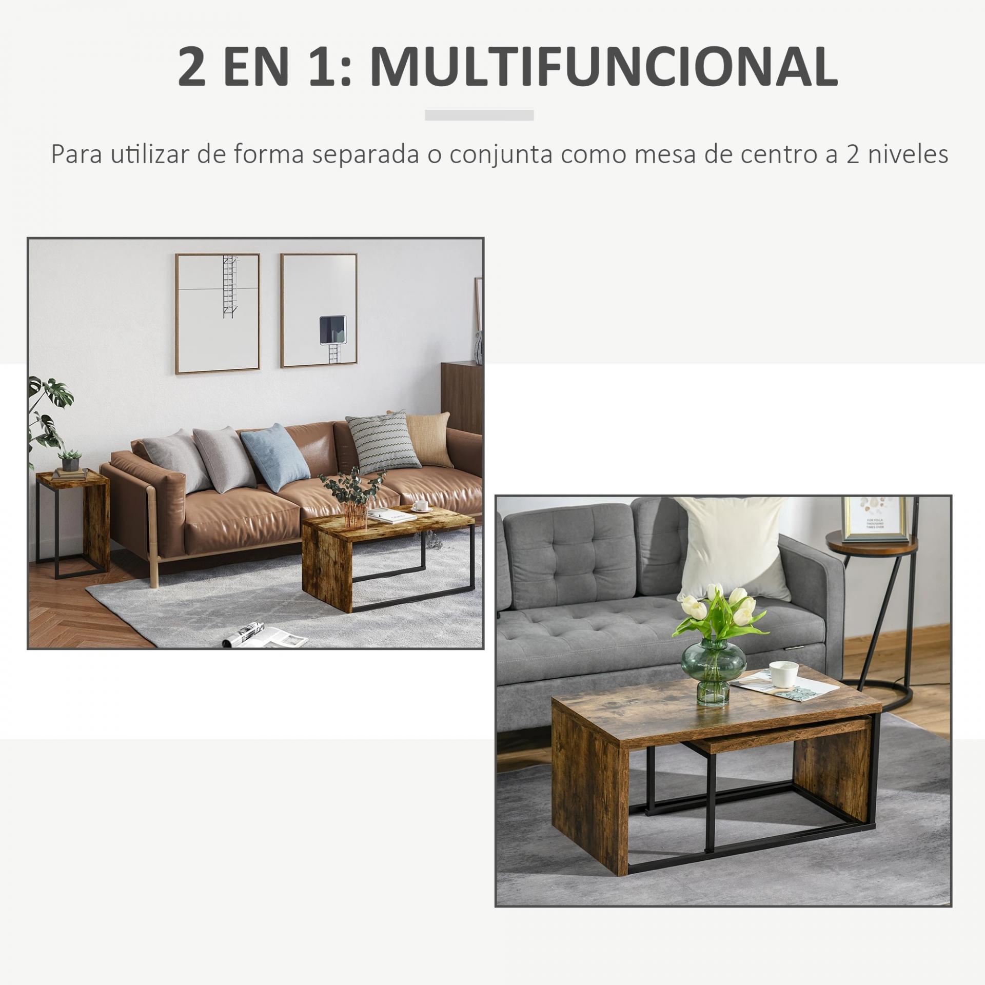 ESTILO INDUSTRIAL ELEGANTE: Este conjunto de mesas de centro combina MDF laminado en tono rústico con patas de metal, aportando un toque moderno y sofisticado a cualquier decoración.