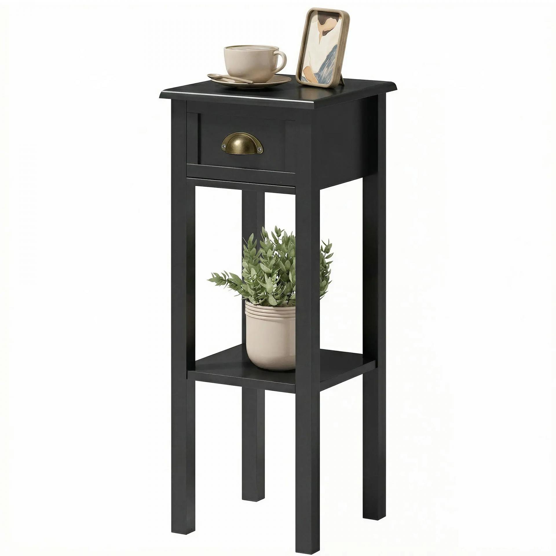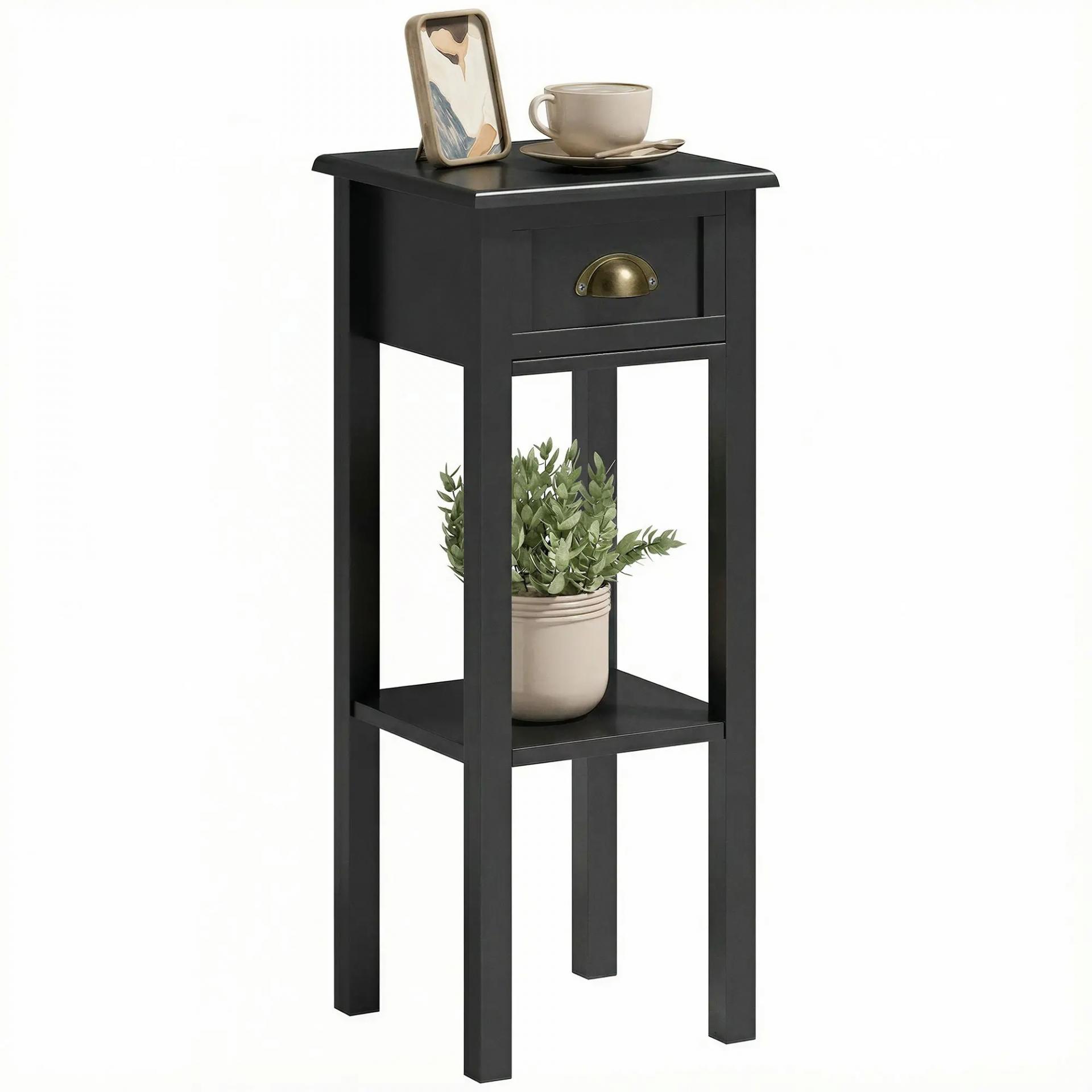 Mesa Auxiliar Estilo Moderno Mesita Auxiliar con Cajón y Estante de Almacenamiento 30x30x75 cm Negro