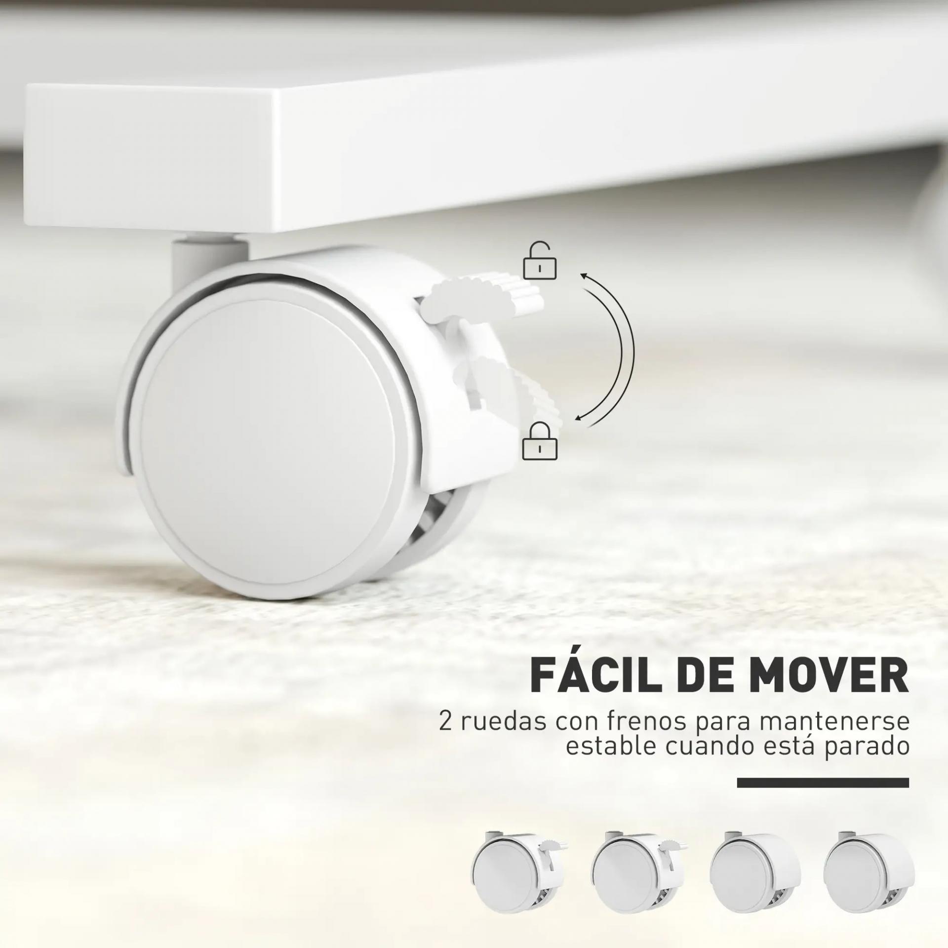 - FÁCIL DE MOVER: Gracias a sus cuatro ruedas giratorias, dos de ellas con freno, puedes desplazarla de una habitación a otra sin esfuerzo y dejarla fija cuando lo necesites, lista siempre para acompañarte donde más la uses