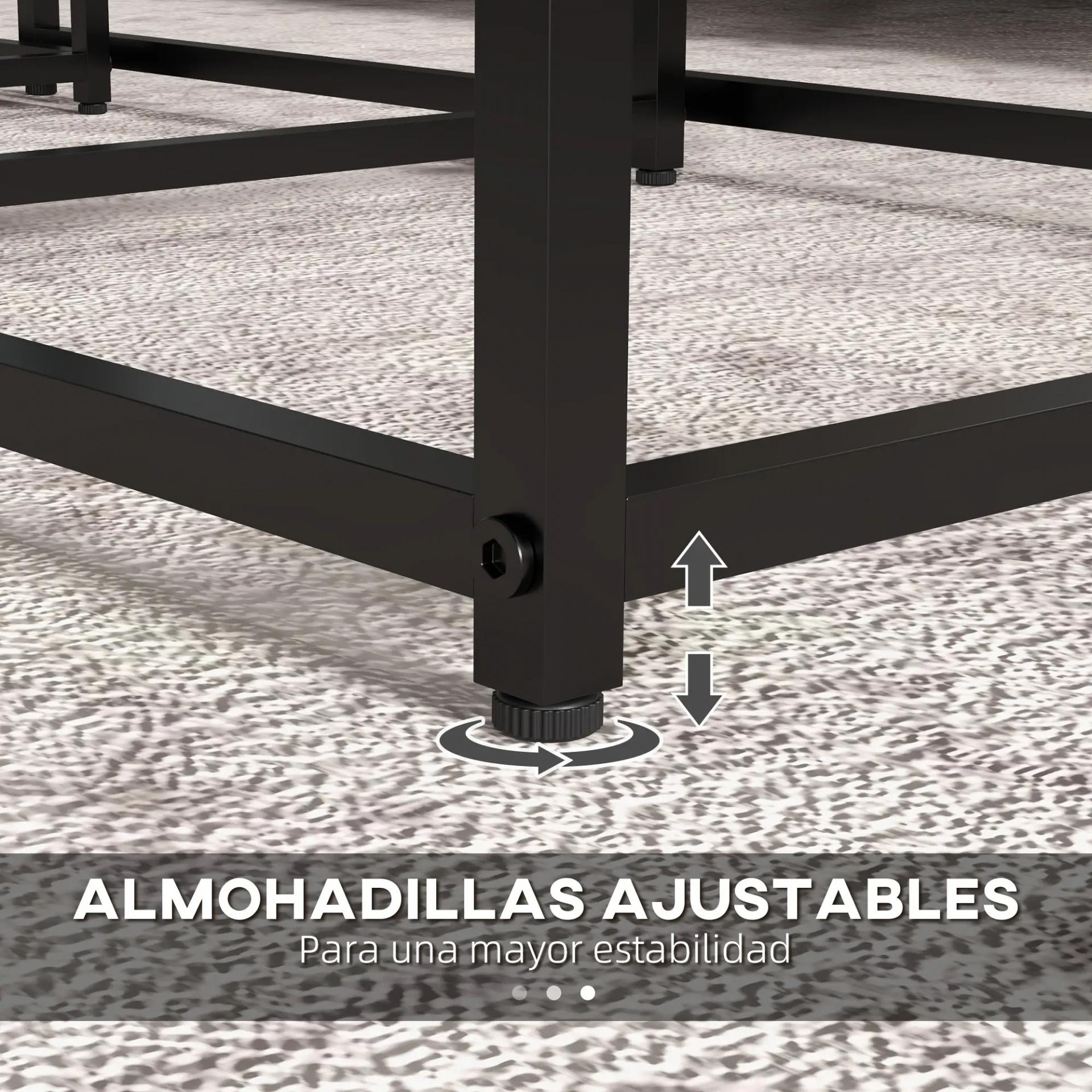 - ESTRUCTURA RESISTENTE DE ACERO: Las mesas nido disponen de una sólida base metálica en color negro que garantiza firmeza y durabilidad. Además, incorporan pies ajustables para mantener una gran estabilidad incluso en suelos irregulares