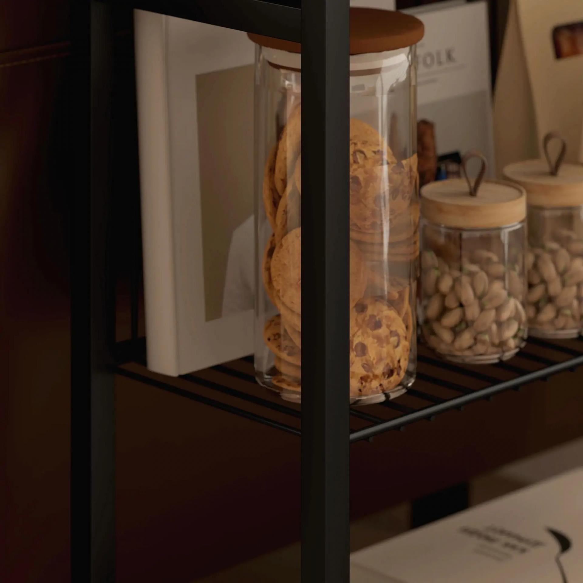 - DISEÑO INDUSTRIAL: La estructura metálica oscura combina con el acabado efecto madera de los estantes, dando un toque industrial y elegante a cualquier rincón de tu casa