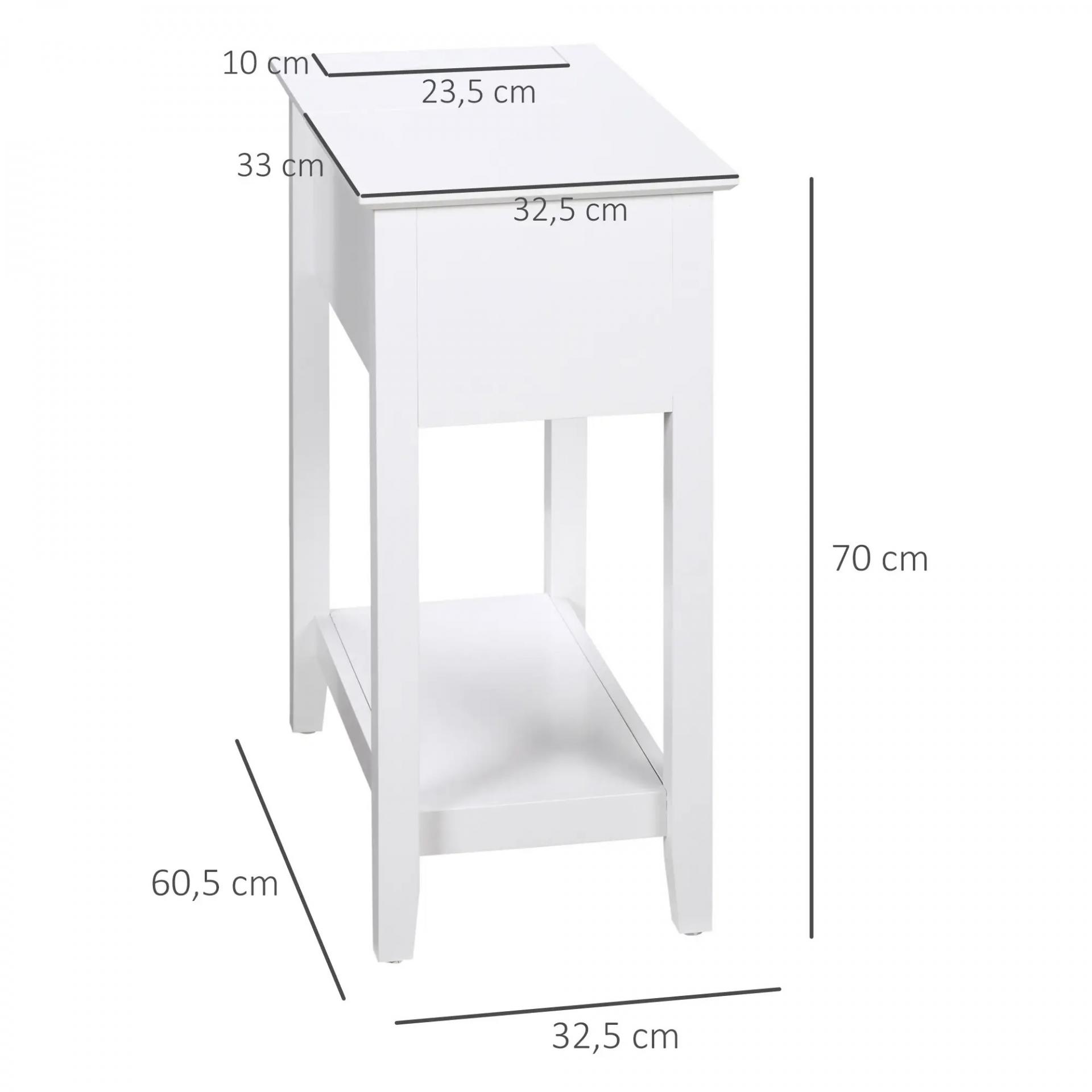 Mesa Auxiliar con Tapa Abatible Estante y Orificio para Cables para Salón Cama Dormitorio 60,5x32,5x70 cm Blanco