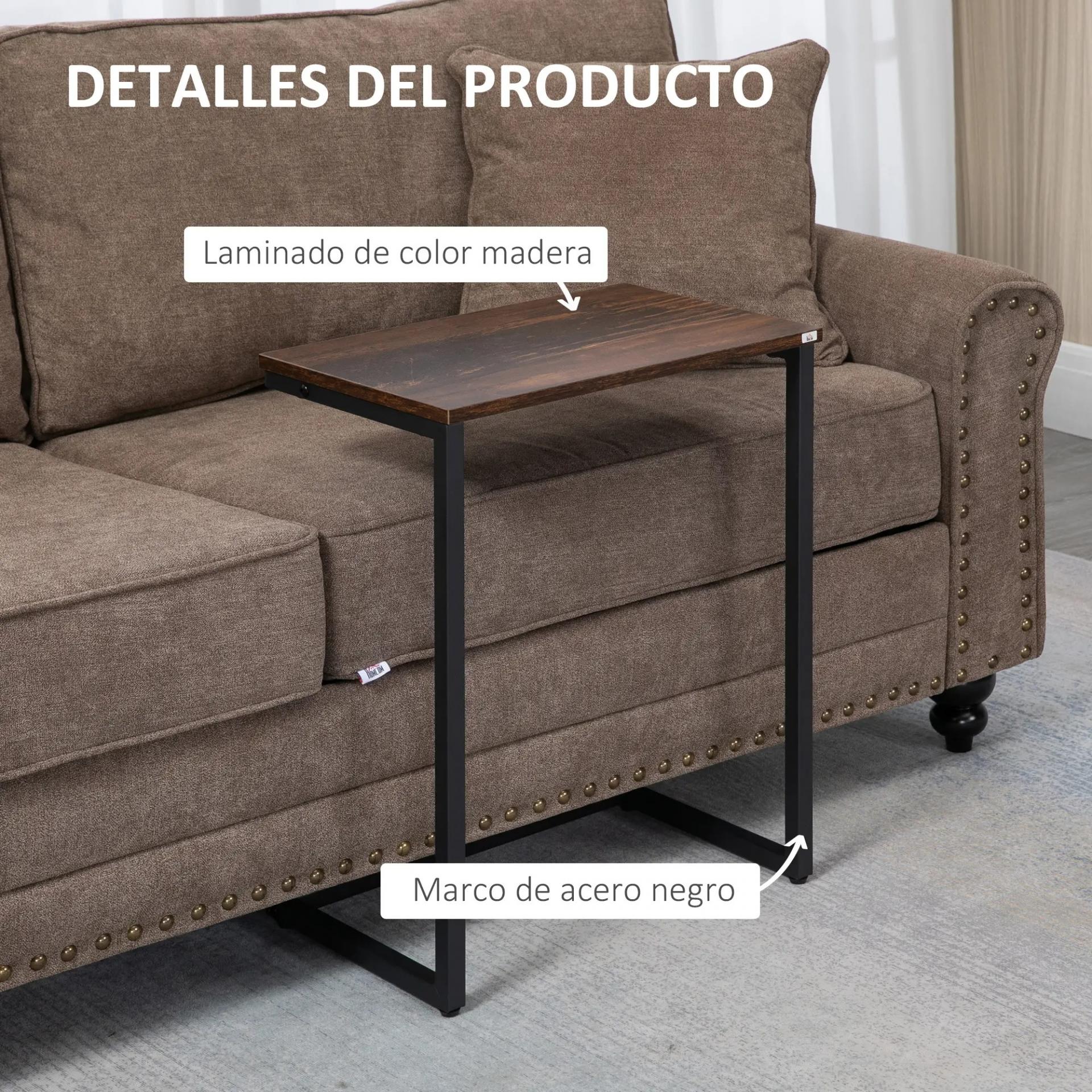 Juego de 3 Mesas Auxiliares de Estilo Industrial en Forma de C 45x30x60cm 40x28x56cm y 34x25x50cm Marrón Rústico