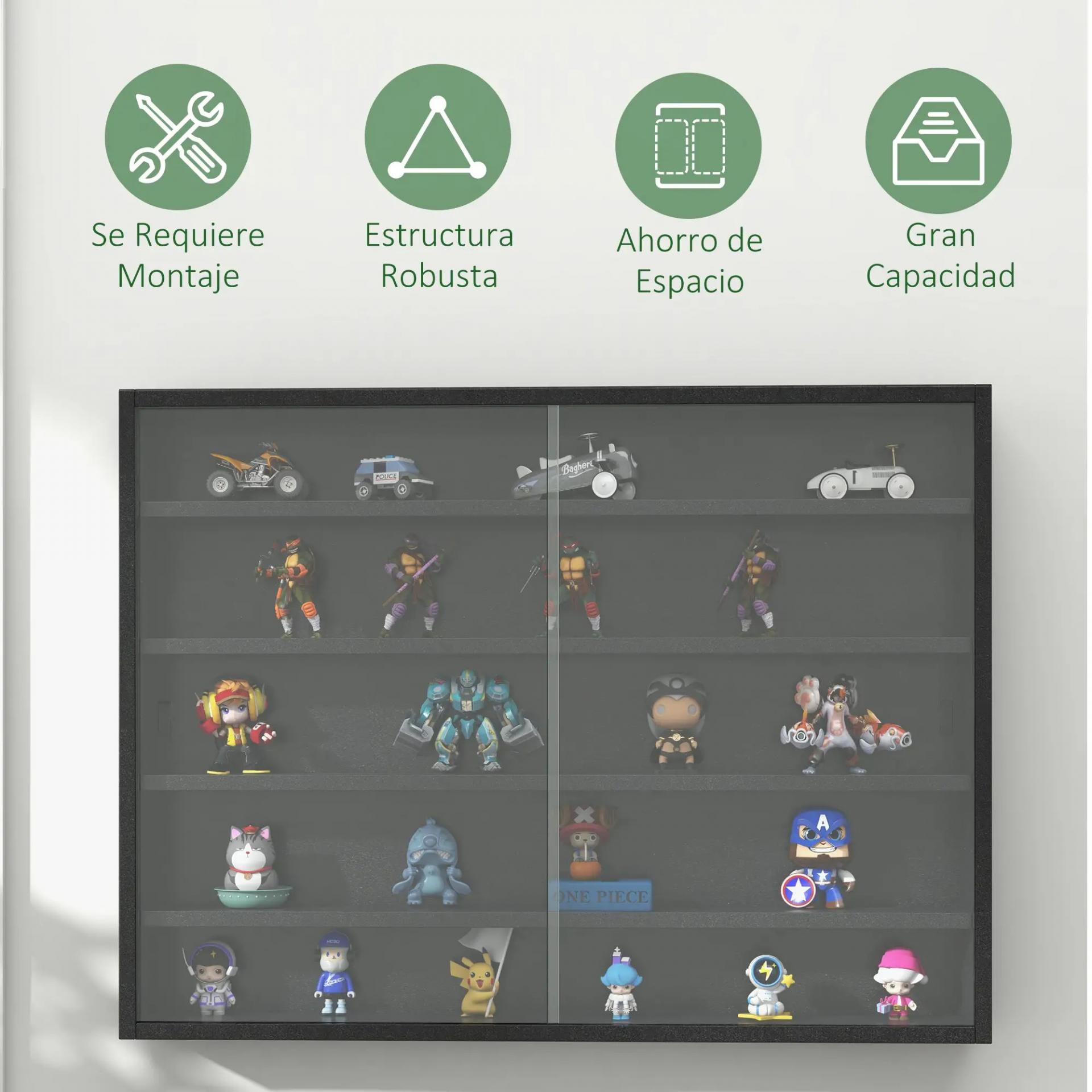 - MONTADA EN LA PARED: Esta vitrina expositora para colecciones viene con todos los accesorios incluidos para su montaje en la pared. Presta atención en mantenerla en posición horizontal durante el montaje