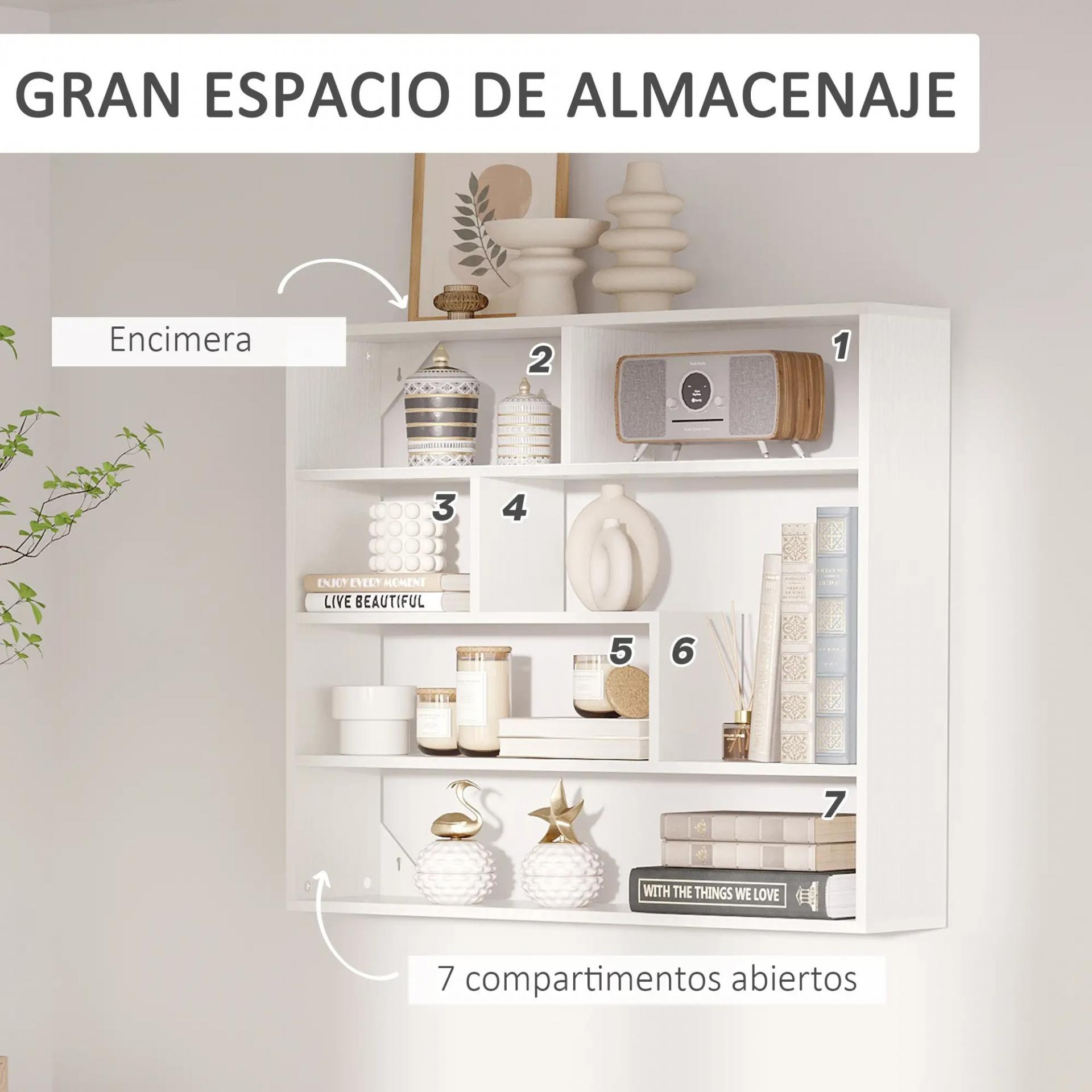 Estantería de Pared Balda Flotante con 7 Compartimientos Abiertos Estilo Moderno 94x19,5x80 cm Blanco