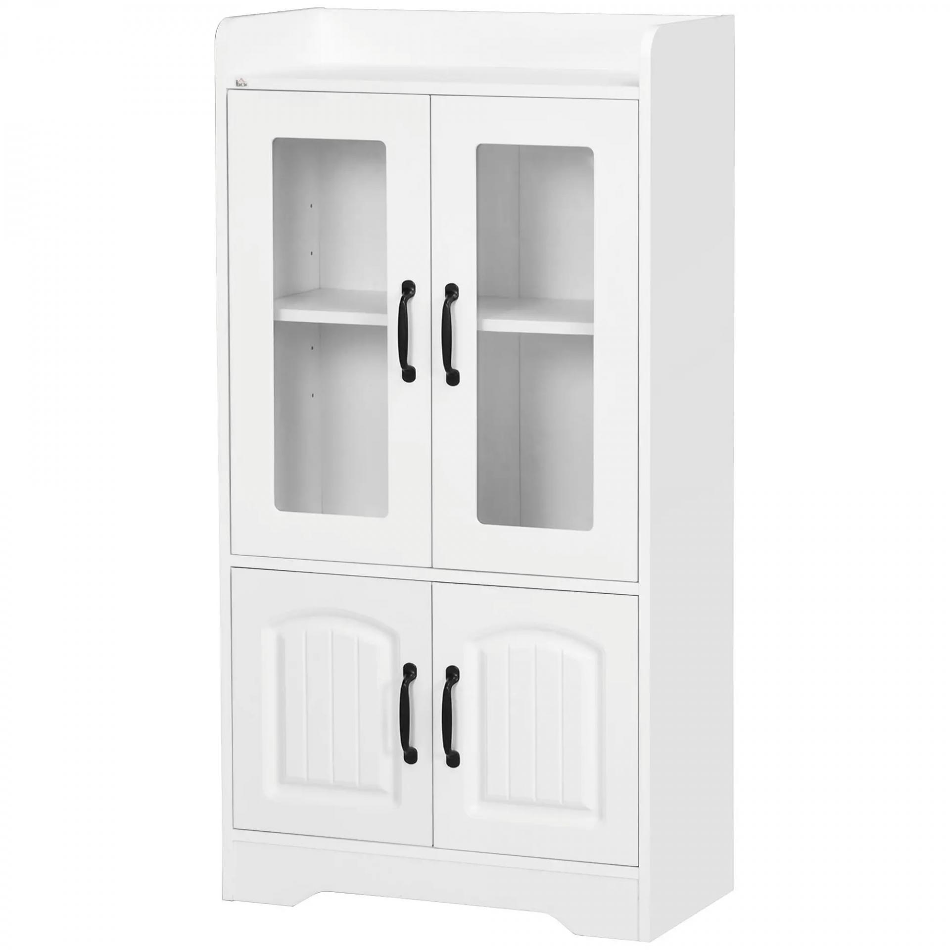 Vitrina de Salón Estantería Librería con Puertas de Vidrio Estante Ajustable Bisagras de Cierre Suave 60x30x116cm Blanco