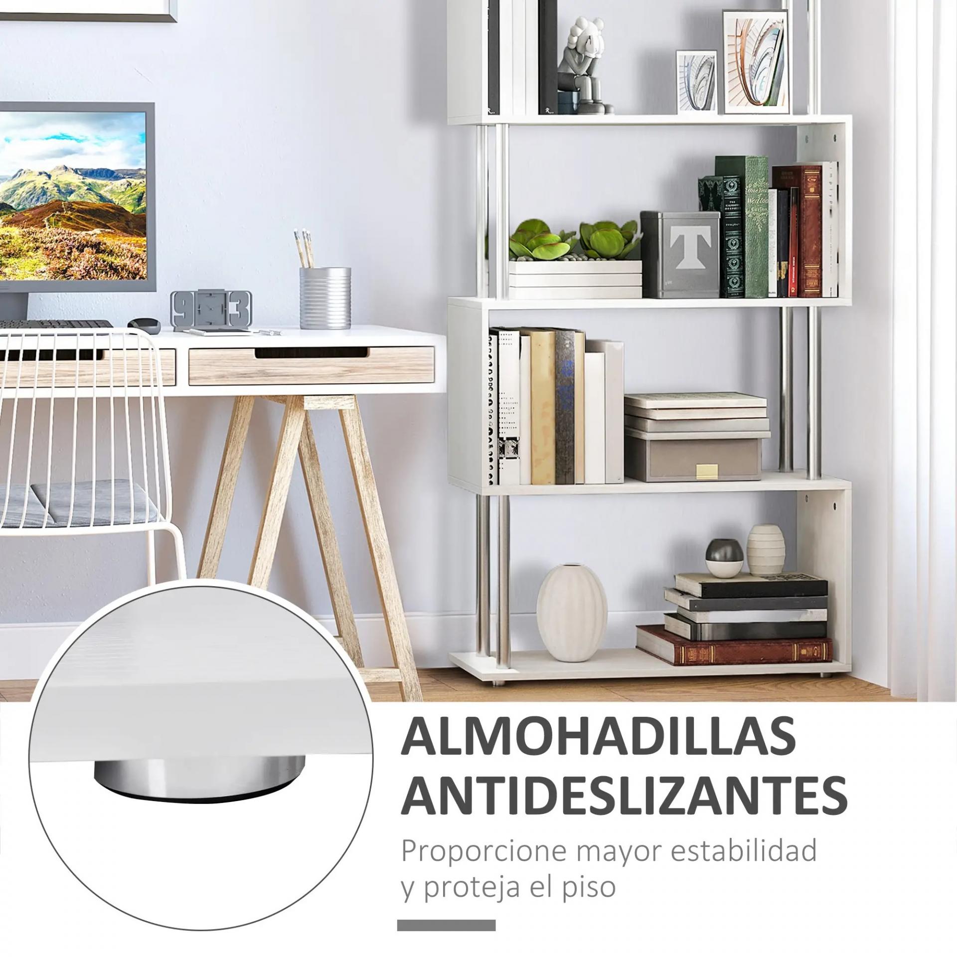 Librería en Forma S Estantería para Libros de 4 Niveles Mueble Estantería para Salón Oficina Estudio 80x30x145 cm Blanco