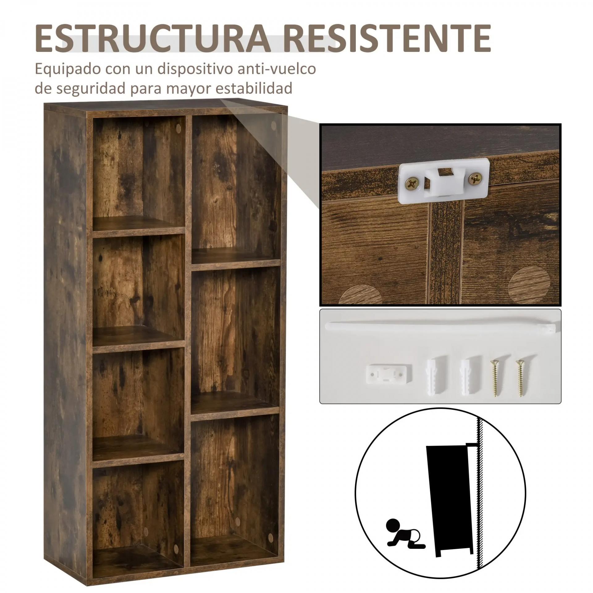 - 7 COMPARTIMENTOS: Esta estantería en color roble cuenta con 7 compartimentos de diferentes tamaños que proporcionan un amplio espacio para satisfacer diferentes necesidades de almacenamiento. Por ejemplo, guardar libros, juguetes, ropa y más