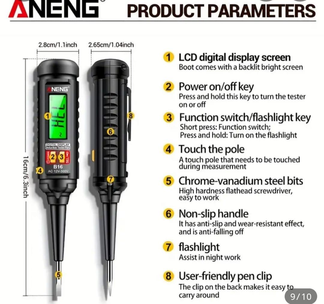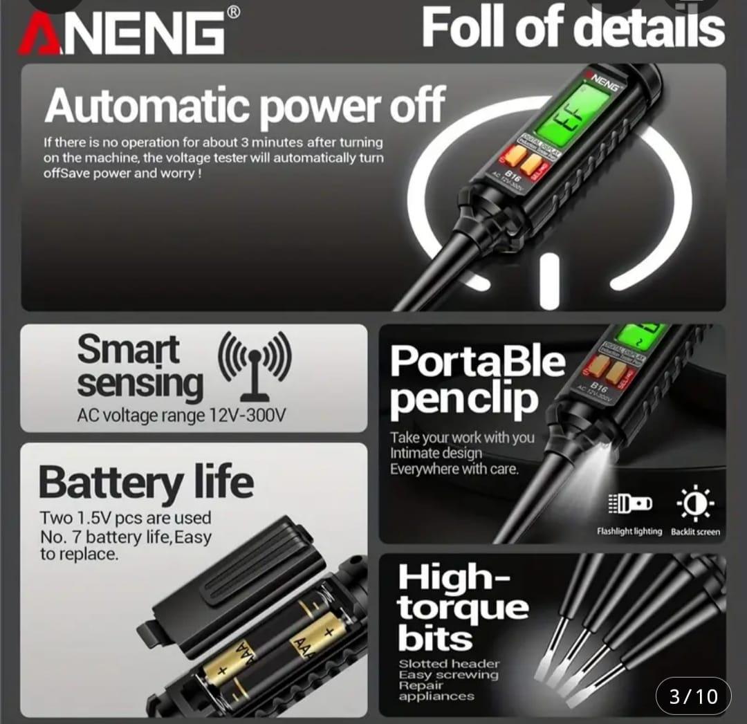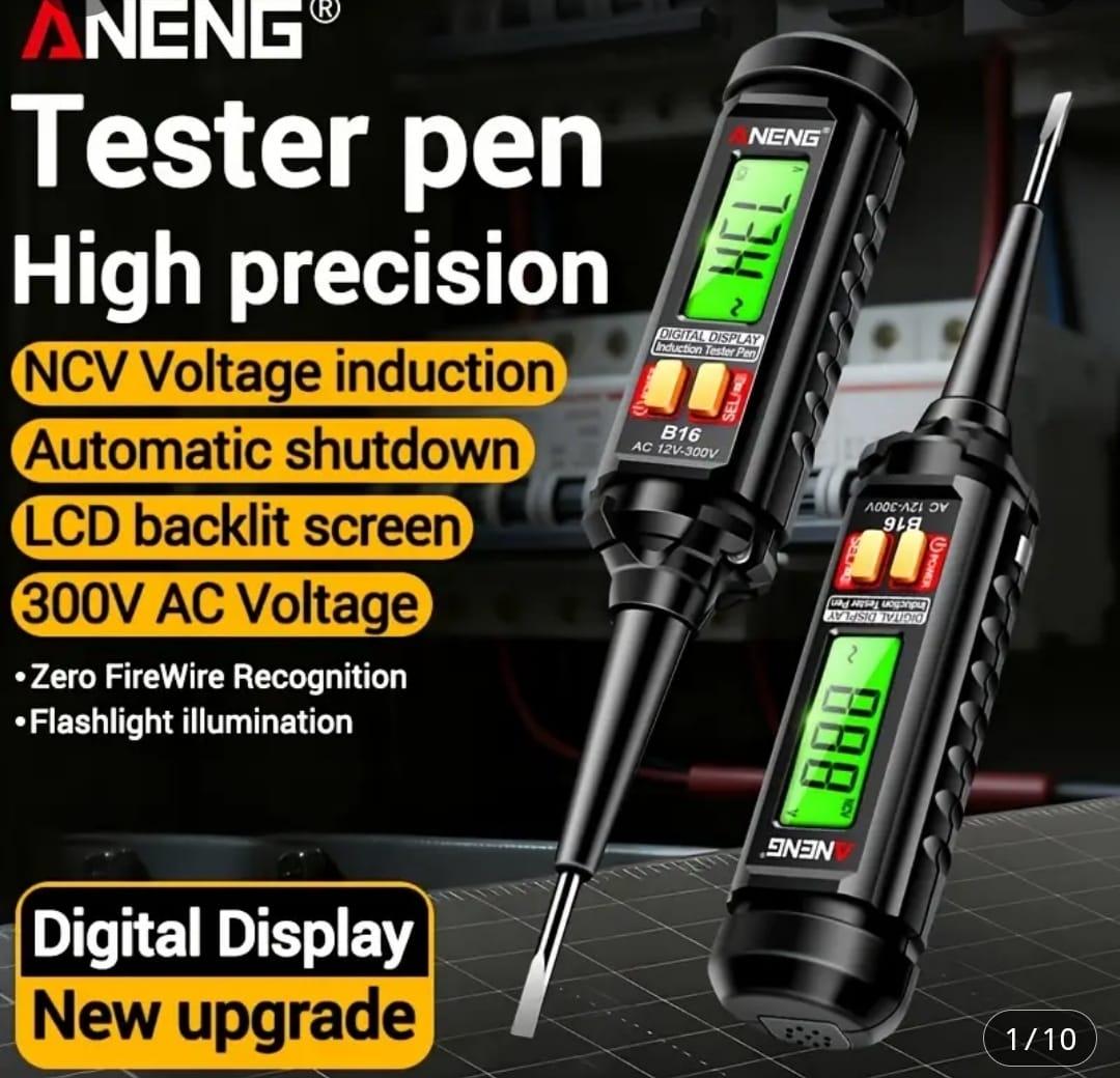 Bolígrafo medidor digital ANENG B16 con pantalla LCD retroiluminada.