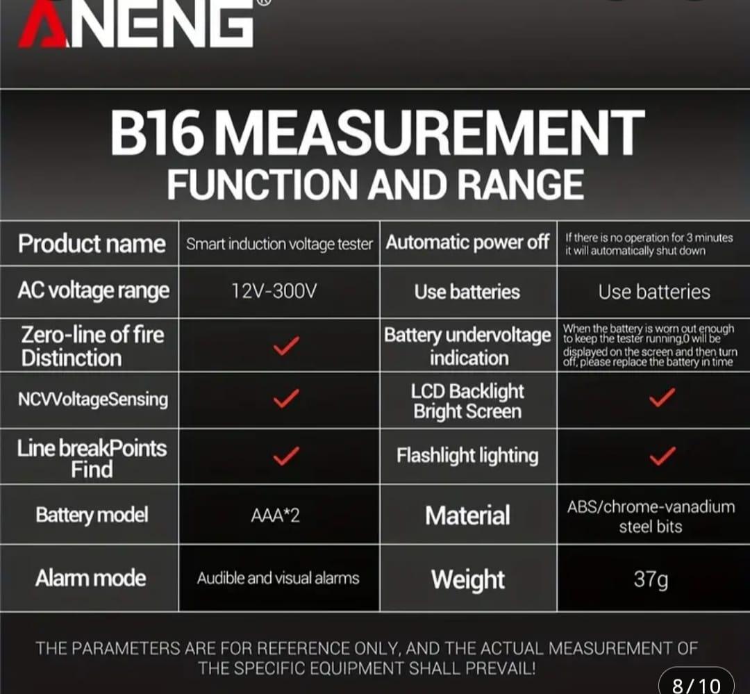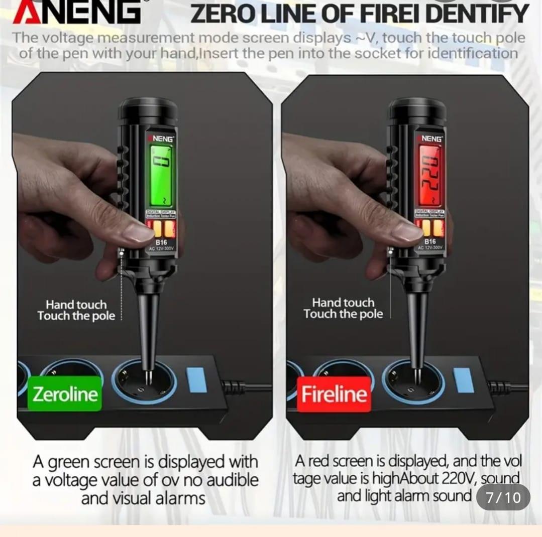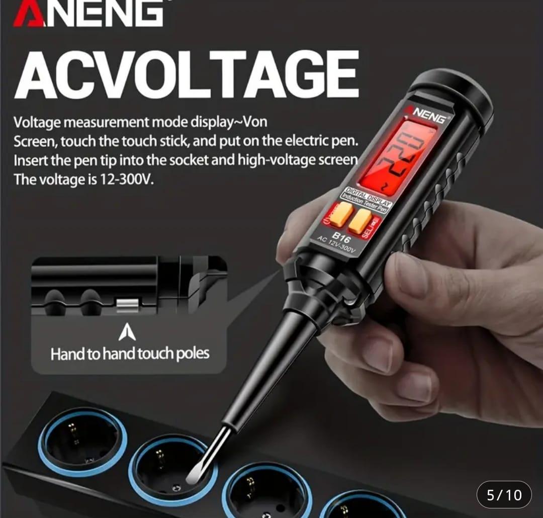 Bolígrafo medidor digital ANENG B16 con pantalla LCD retroiluminada.