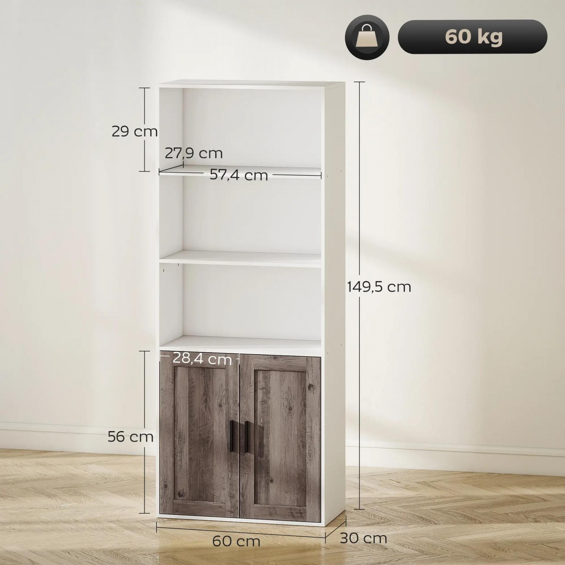 Estantería para Libros Estrecha Librería con Puertas Estantes Abiertos y Armario 60x30x149,5 cm Blanco y Marrón