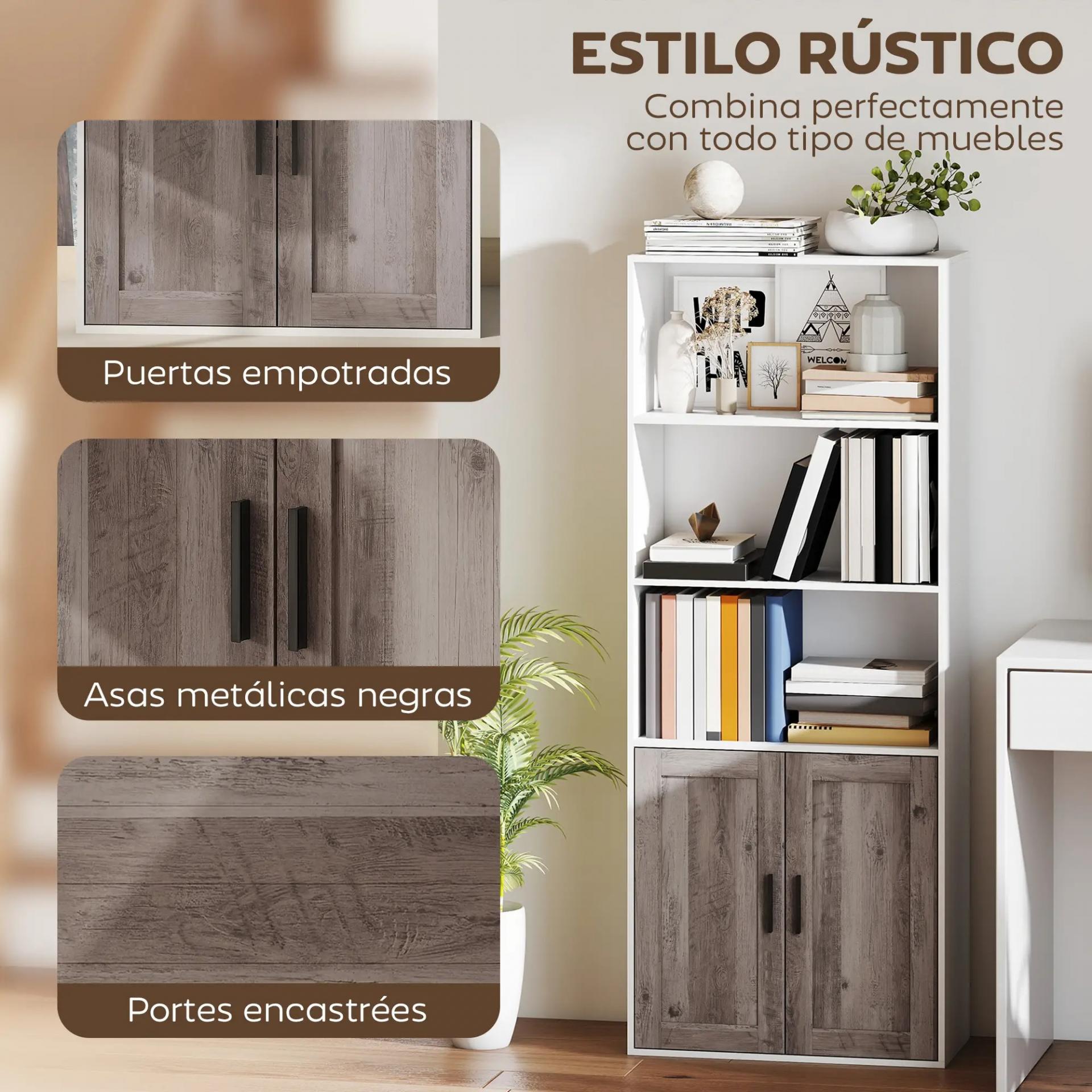 - ESTILO RÚSTICO CON ENCANTO: Esta estantería con puertas destaca por su diseño en efecto madera marrón y tiradores metálicos negros, aportando un toque cálido y auténtico a tu salón, despacho o dormitorio