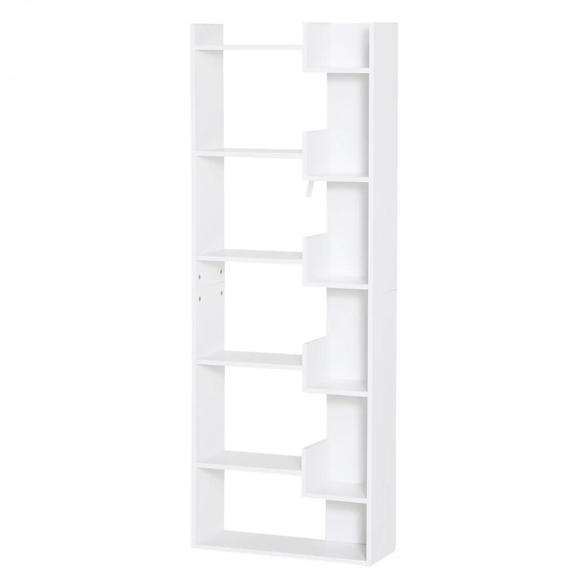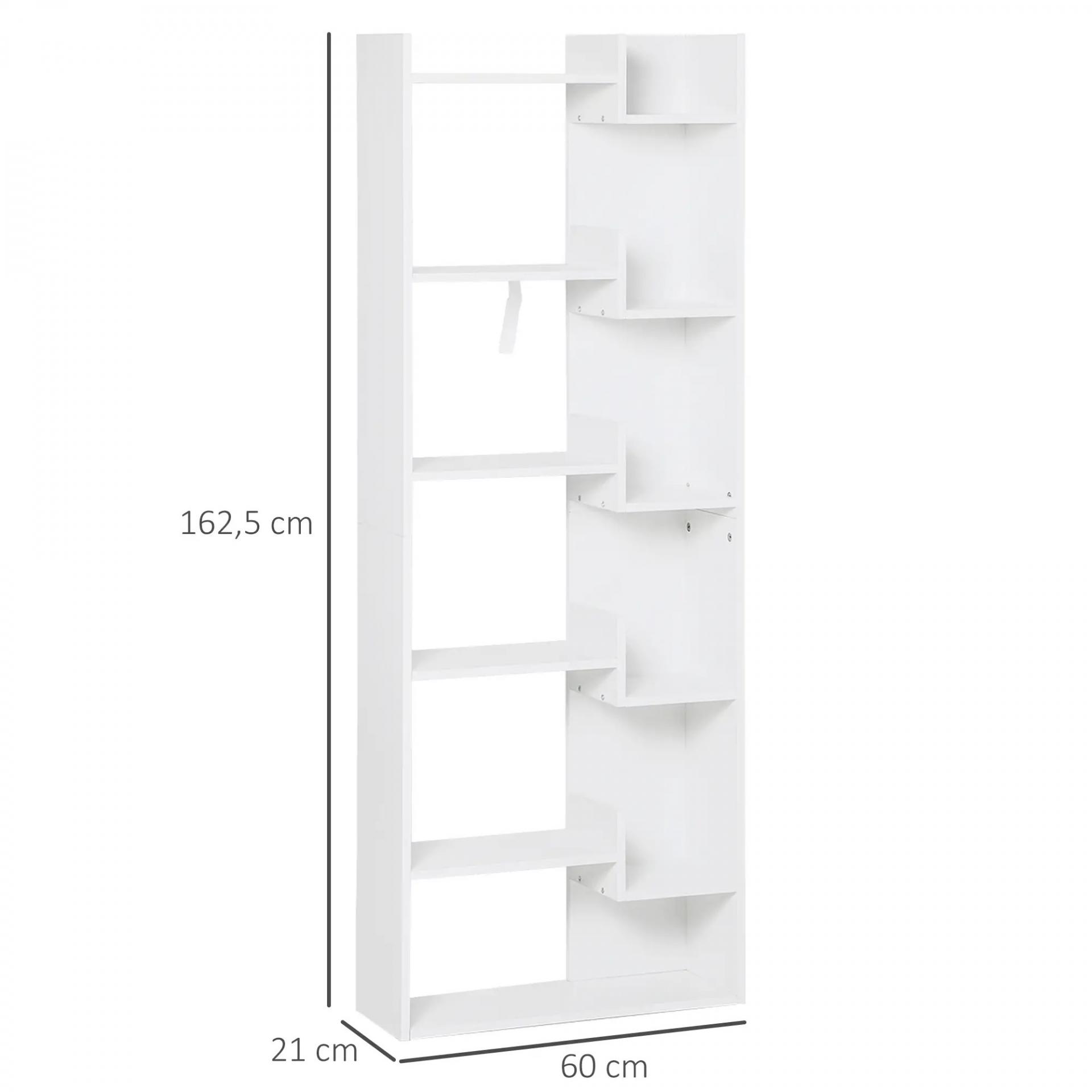 Estantería de 6 Niveles Librería Vertical de Forma Irregular Diseño Moderno Sistema Antivuelco 60x21x162,5 cm Blanco