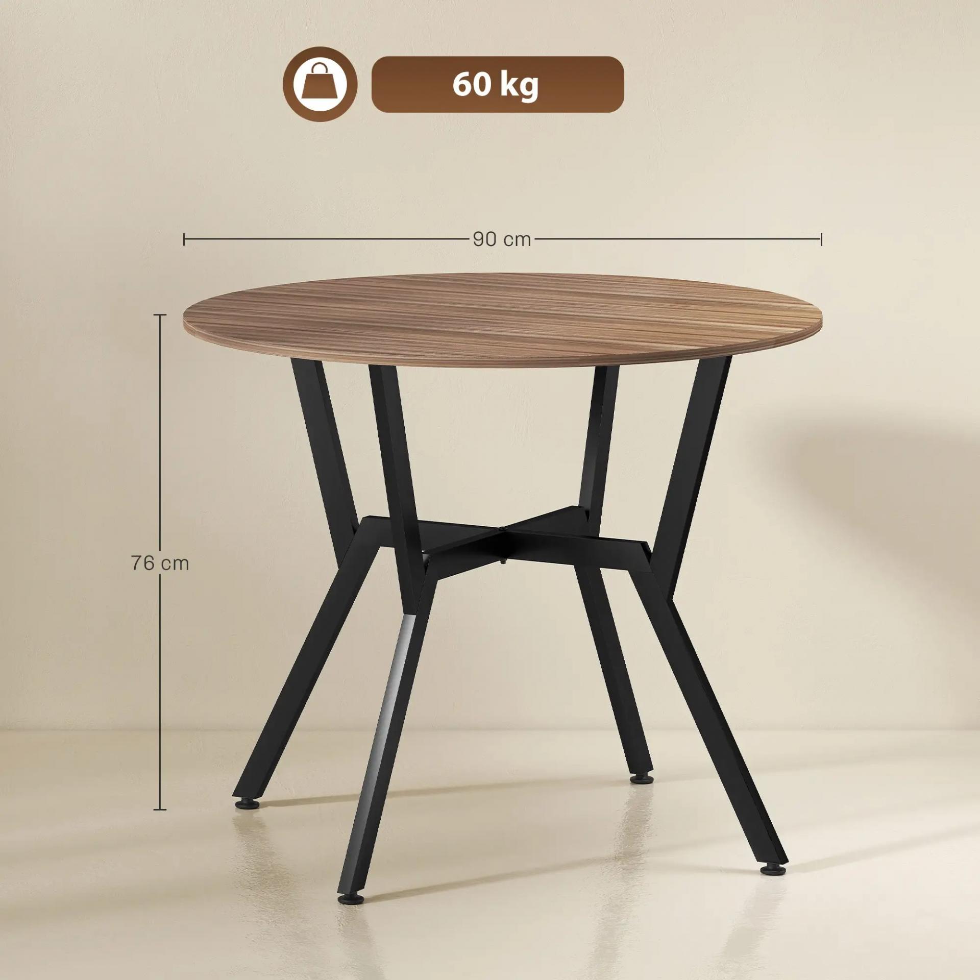 Mesa de Comedor Redonda de Estilo Industrial con Encimera de Madera y Marco de Acero Ø90x76 cm Marrón