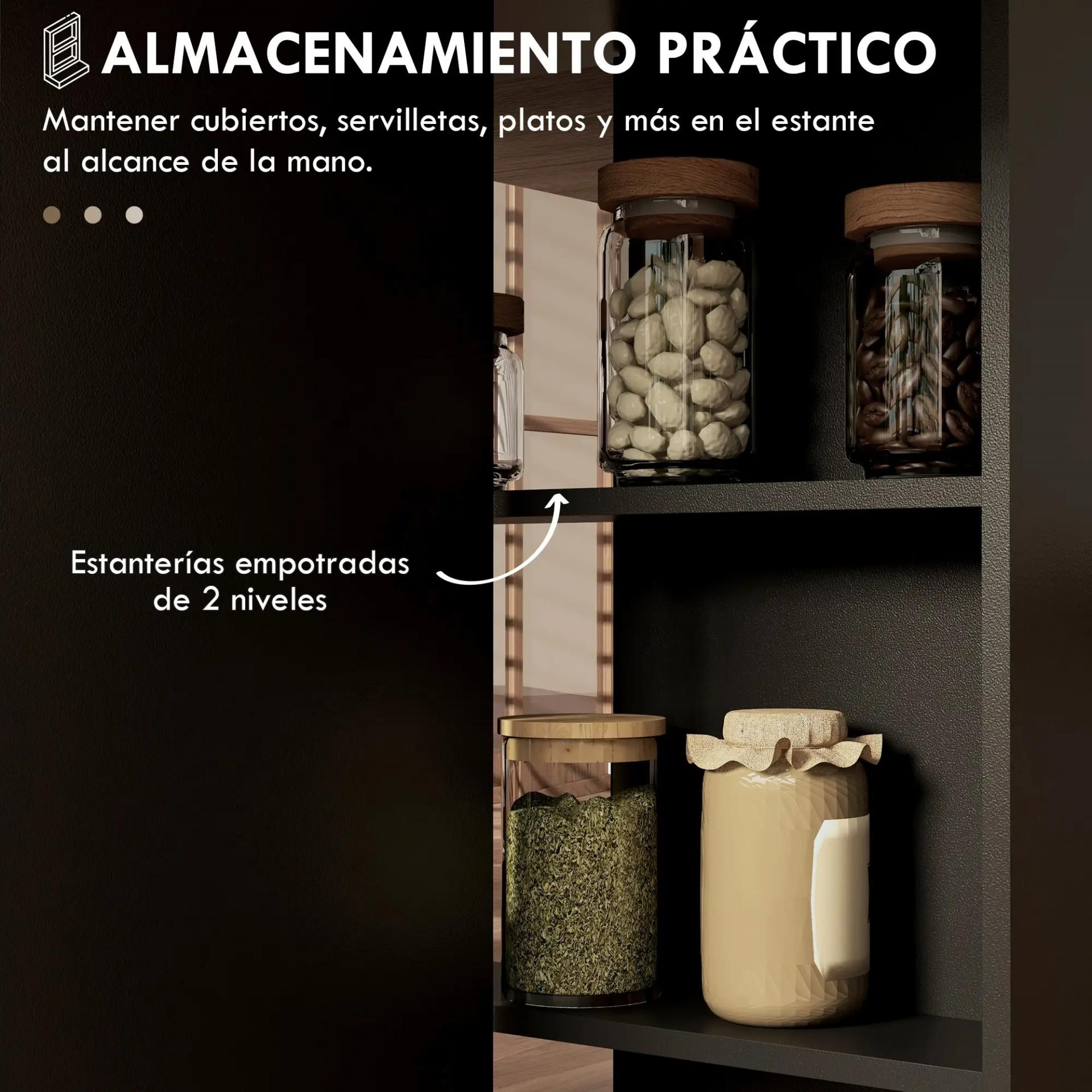- 2 ESTANTES Y 2 RUEDAS: Esta mesa de cocina plegable cuenta con 2 estantes centrales que ofrecen espacio extra de almacenaje, protegidos por las solapas laterales al plegarse. Las 2 ruedas con frenos permiten abrir las alas y mantenerlas estables