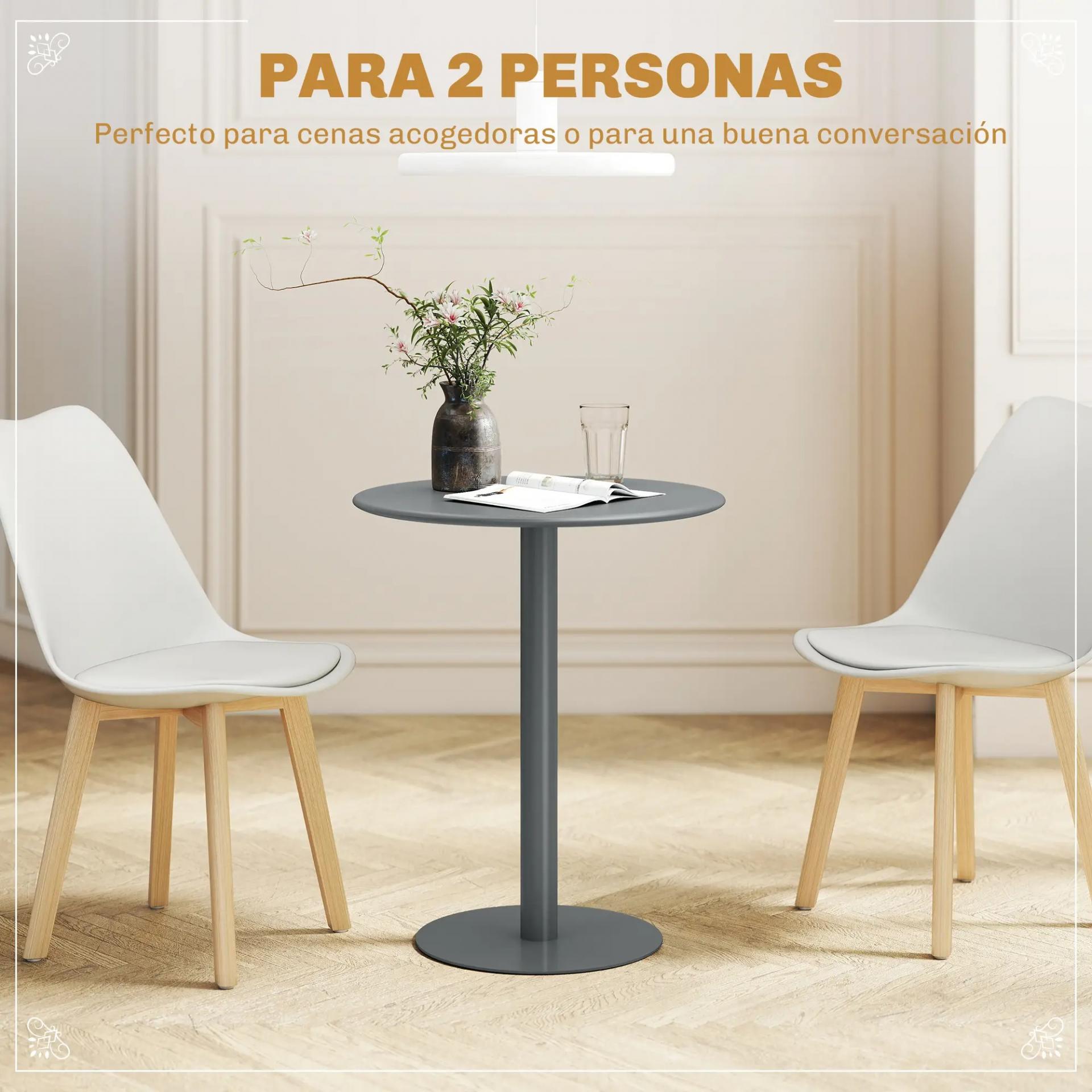Mesa de Comedor Redonda para 2 Personas Mesa de Cocina de Acero para Interior y Exterior Ø60x72 cm Gris