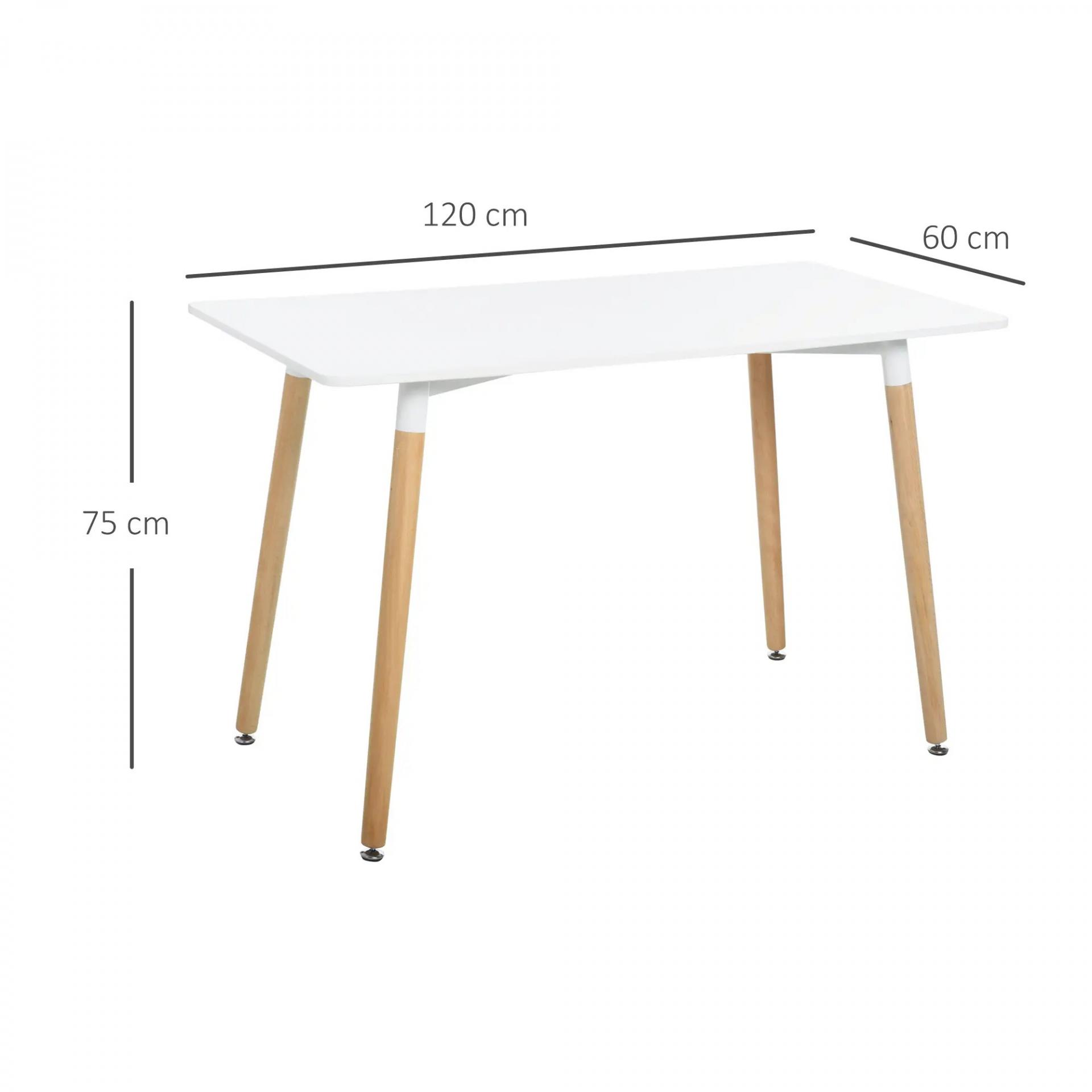 Mesa de Comedor Estilo Nórdico Mesa de Cocina con Patas de Madera de Haya Estructura de Metal 120x60x75 cm Blanco