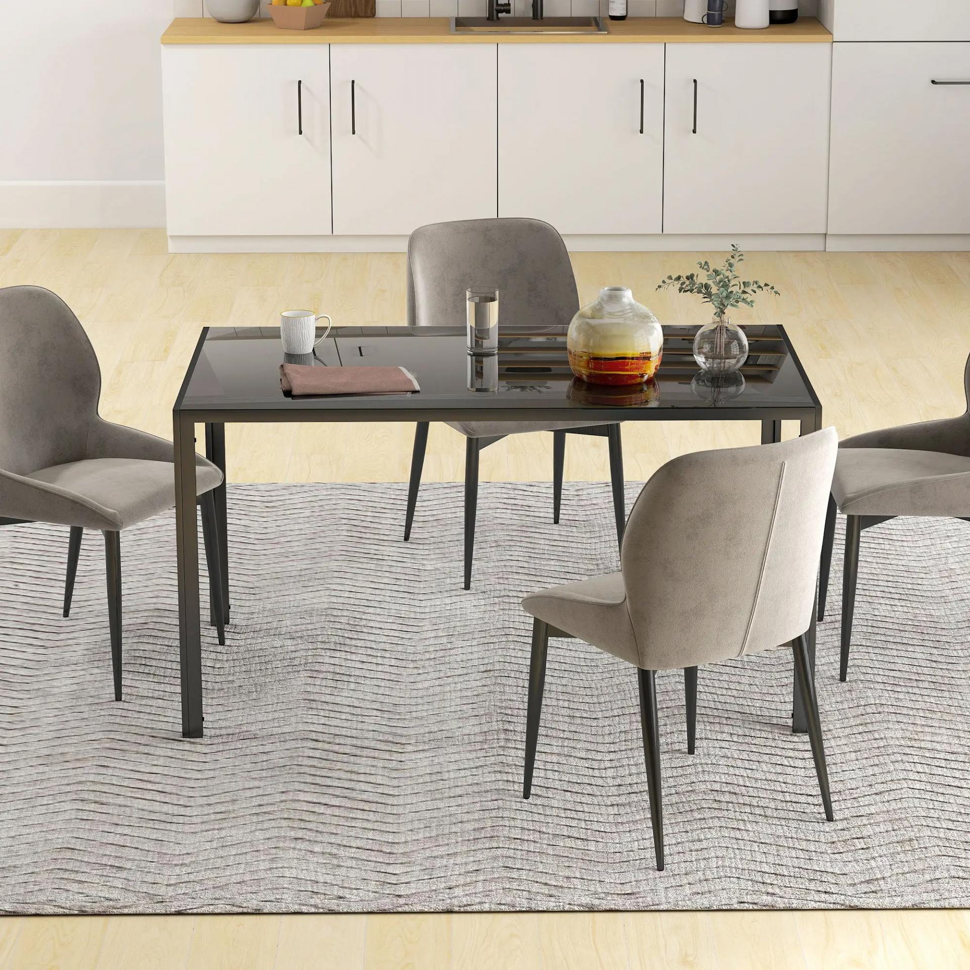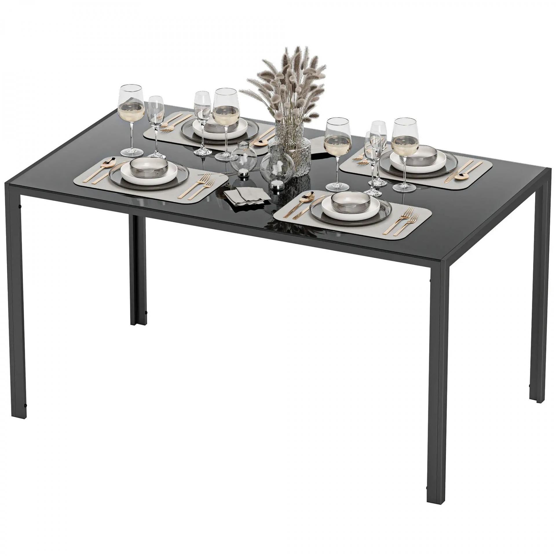 Mesa de Comedor de Cristal Rectangular para 6 Personas con Patas de Metal para Cocina Salón 140x80x75 cm Negro