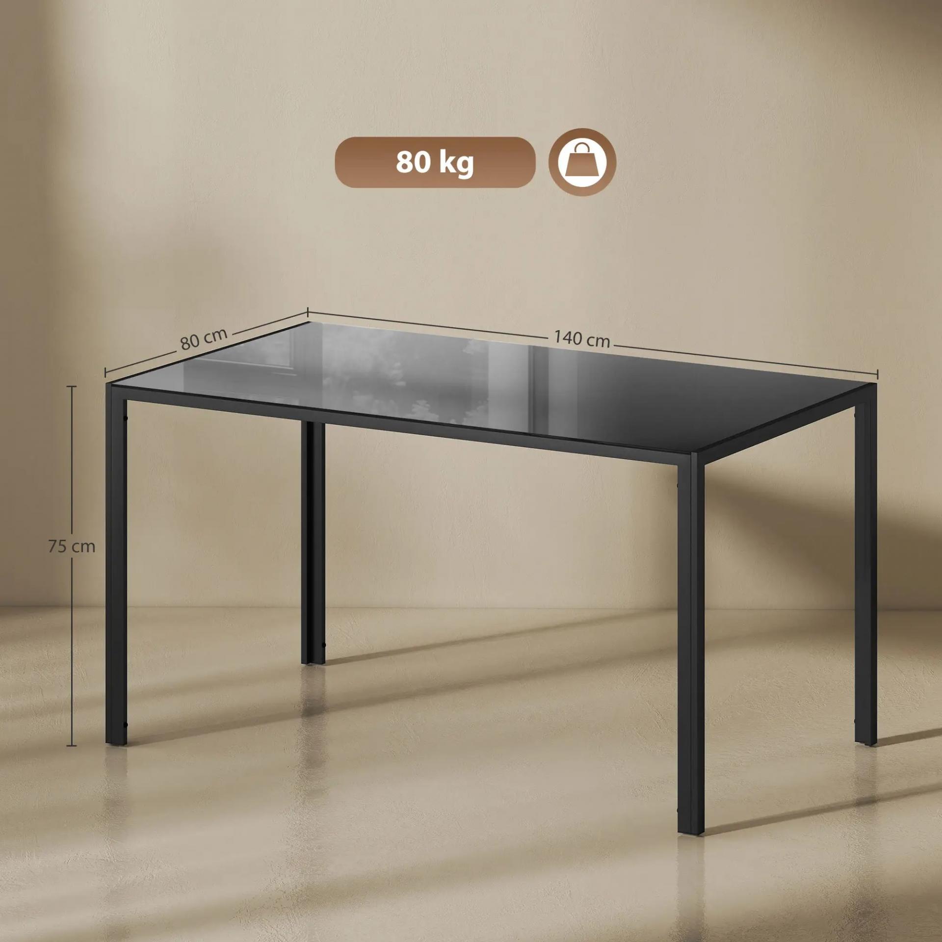 - MEDIDAS TOTALES: La mesa de comedor de cristal mide 140x80x75 cm (LxANxAL) y puede soportar hasta 80 kg de peso distribuido uniformemente. Viene desmontada e incluye instrucciones claras para el montaje