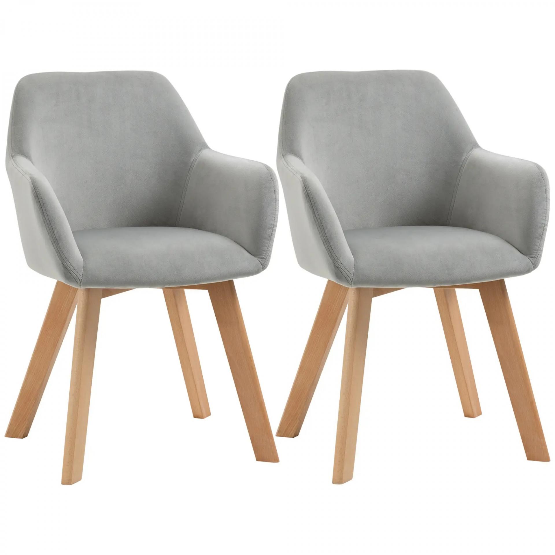 Juego de 2 Sillas de Comedor Modernas Tapizadas en Terciopelo con Patas de Madera para Salón 54x57x80 cm Gris
