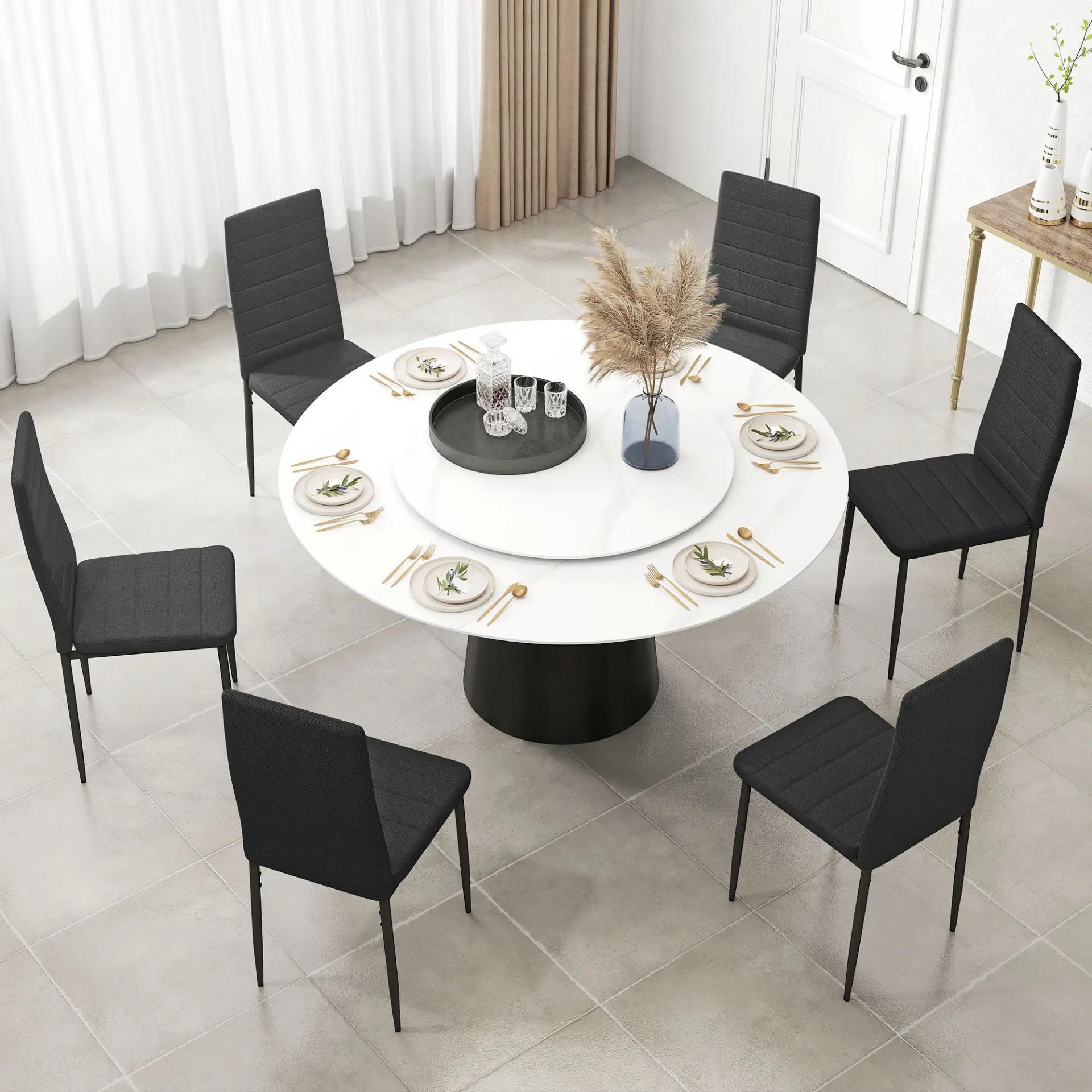Pack de 6 Sillas de Comedor Modernas Tapizadas en Lino Sintético con Respaldo Alto y Patas de Metal 41x50x97 cm Negro