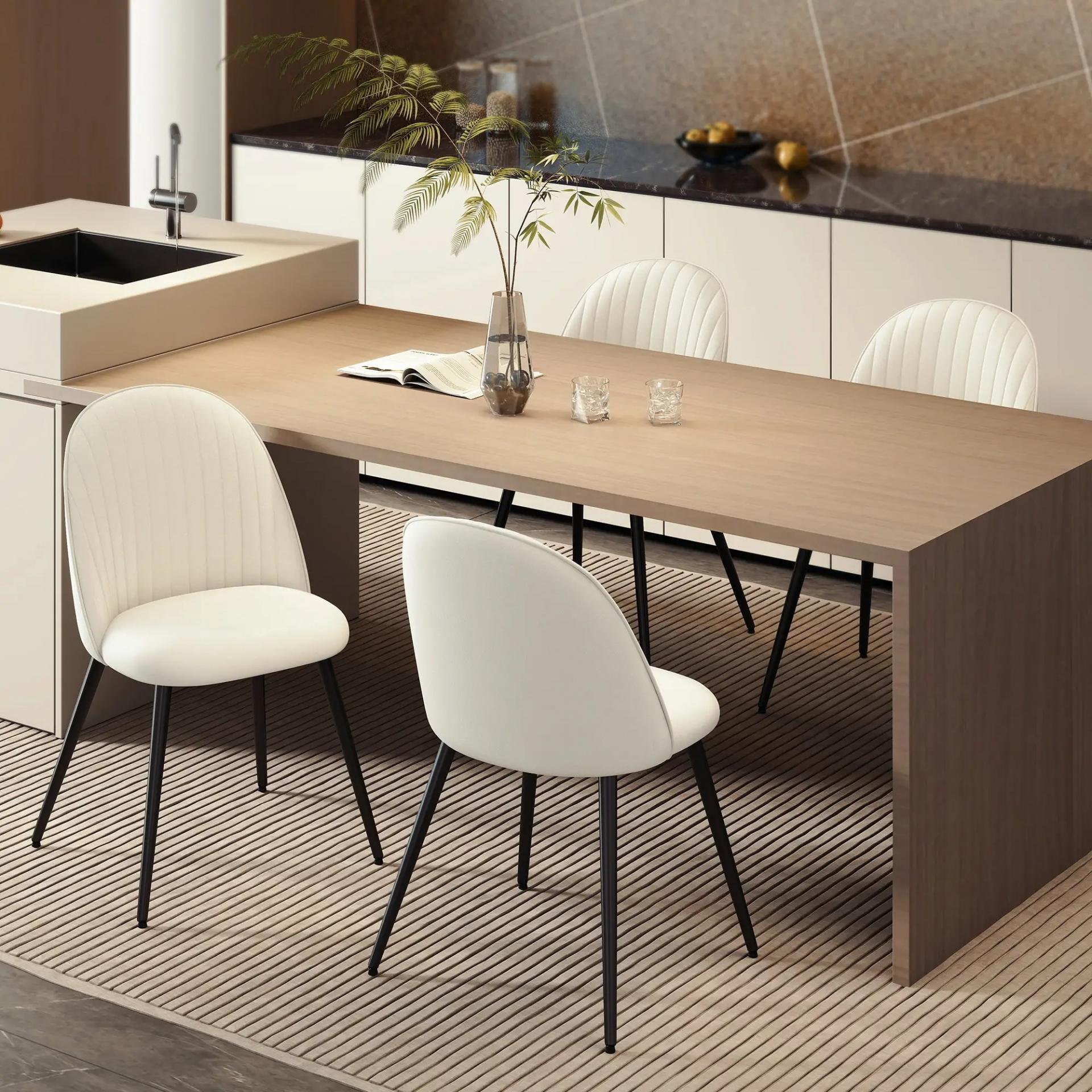 Pack de 4 Sillas de Comedor Modernas Sillas de Cocina Tapizada en Terciopelo con Respaldo Bajo 50x52x83 cm Crema