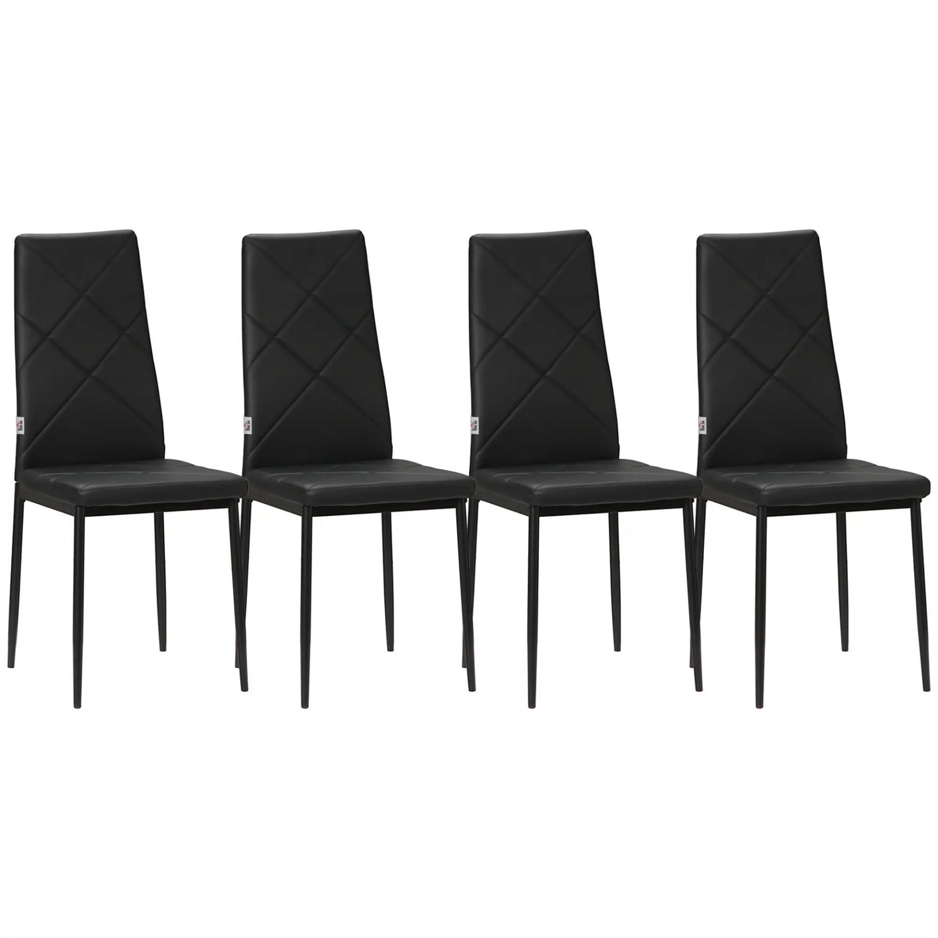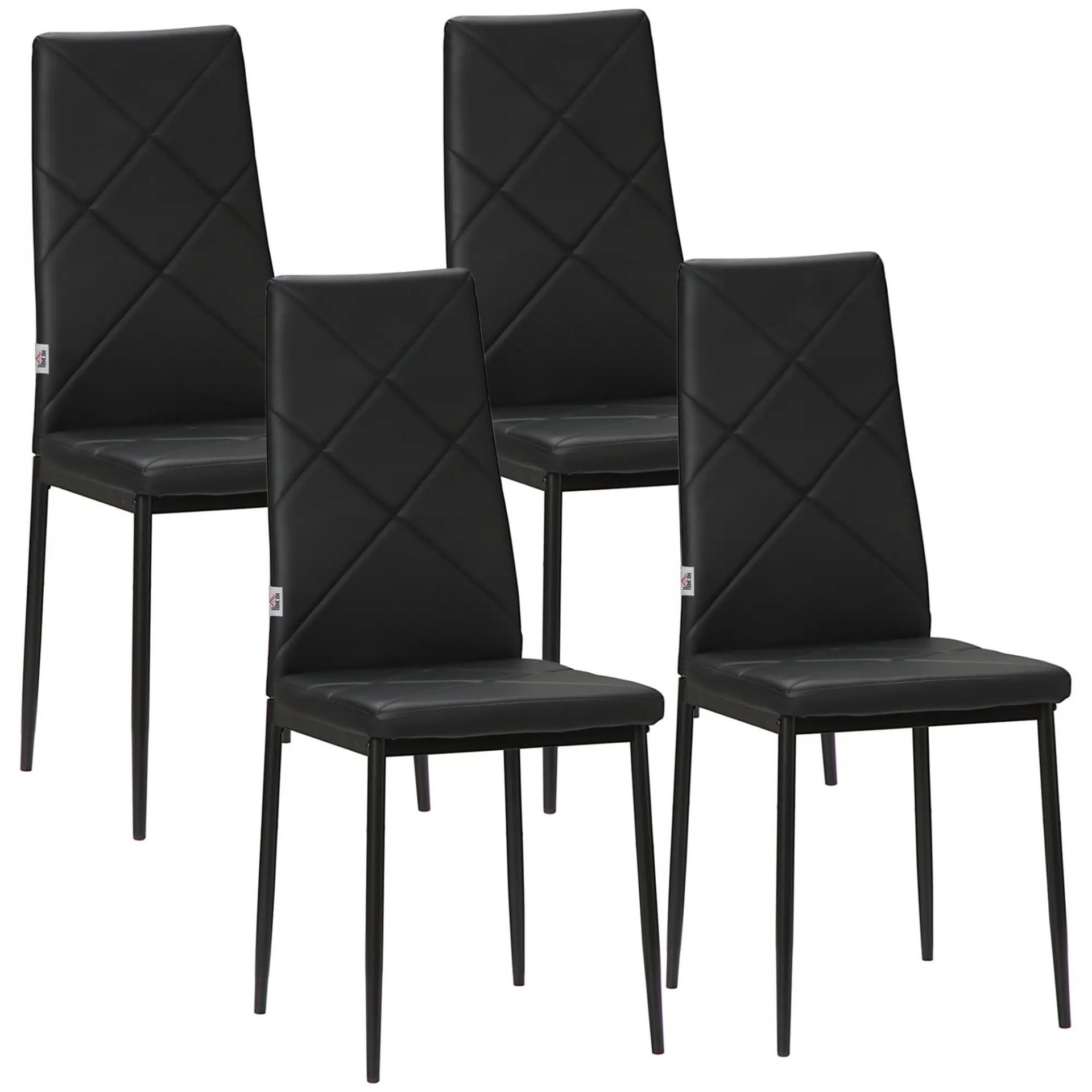 Set de 4 Sillas de Comedor Tapizadas de Piel Sintética con Respaldo Alto y Patas de Metal 41x50x97 cm Negro