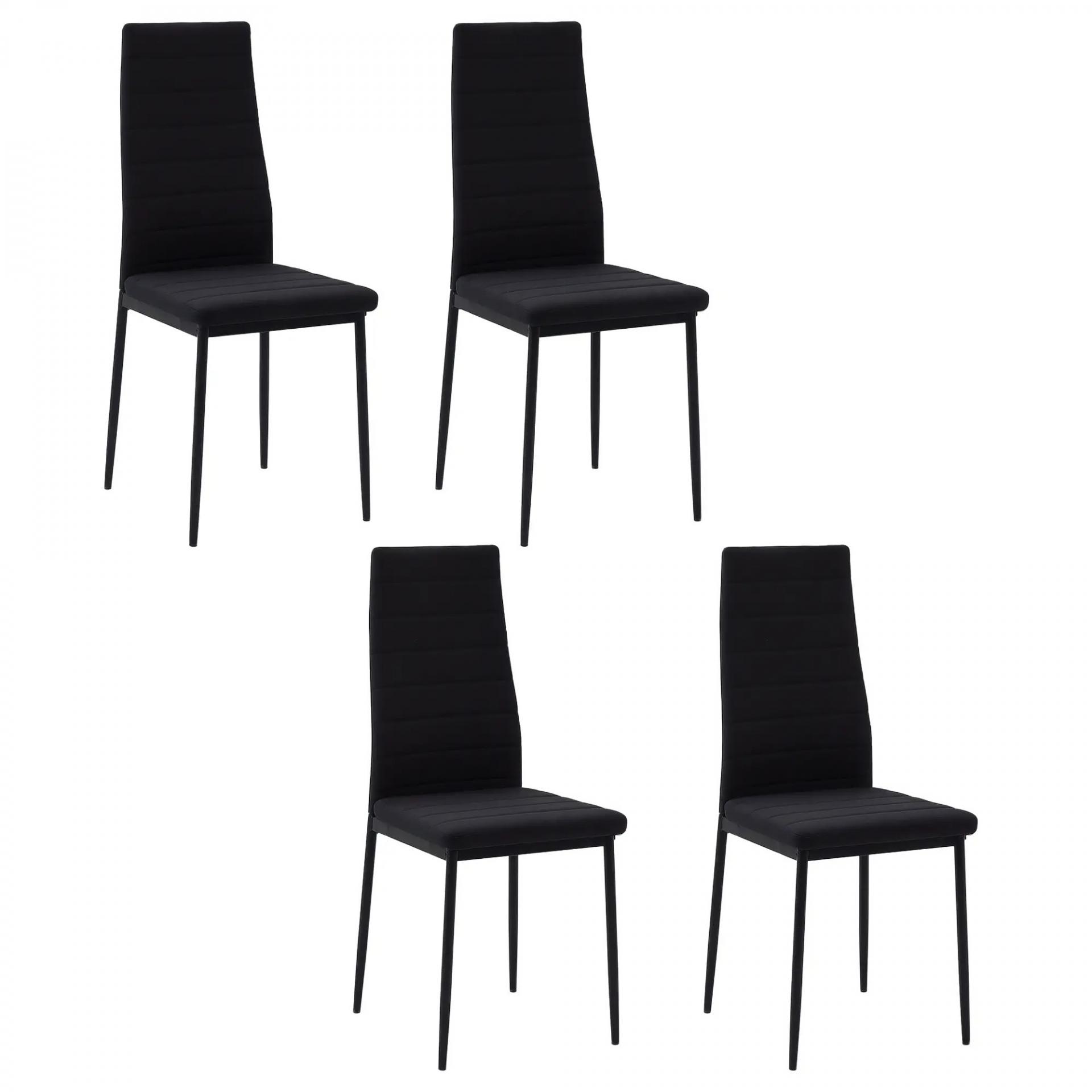 Pack de 4 Sillas de Cocina Modernas Tapizadas en Lino y Patas de Metal para Salón Carga 120 kg 41x50x97 cm Negro