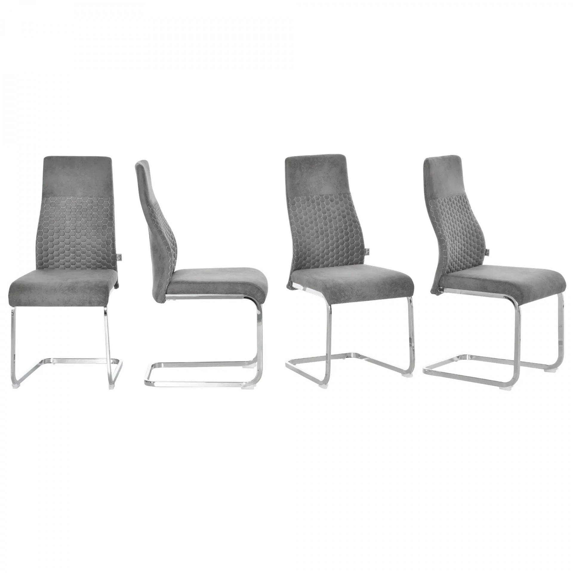 Set de 4 Sillas de Comedor Sillas de Cocina Tejido de Microfibra con Asiento Acolchado y Patas de Metal 45x61x98 cm Gris