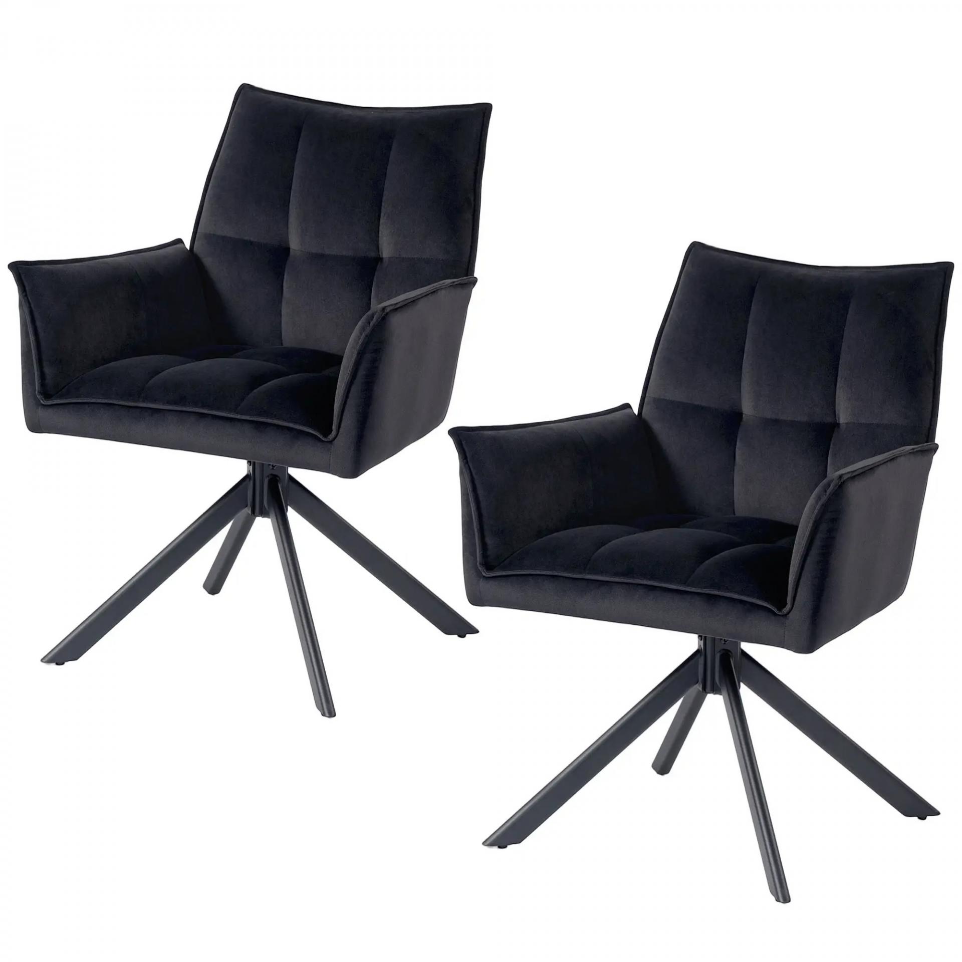 Pack de 2 Sillas de Comedor Giratorias con Reposabrazos Respaldo Acolchado Tapizado en Terciopelo Patas de Acero Negro