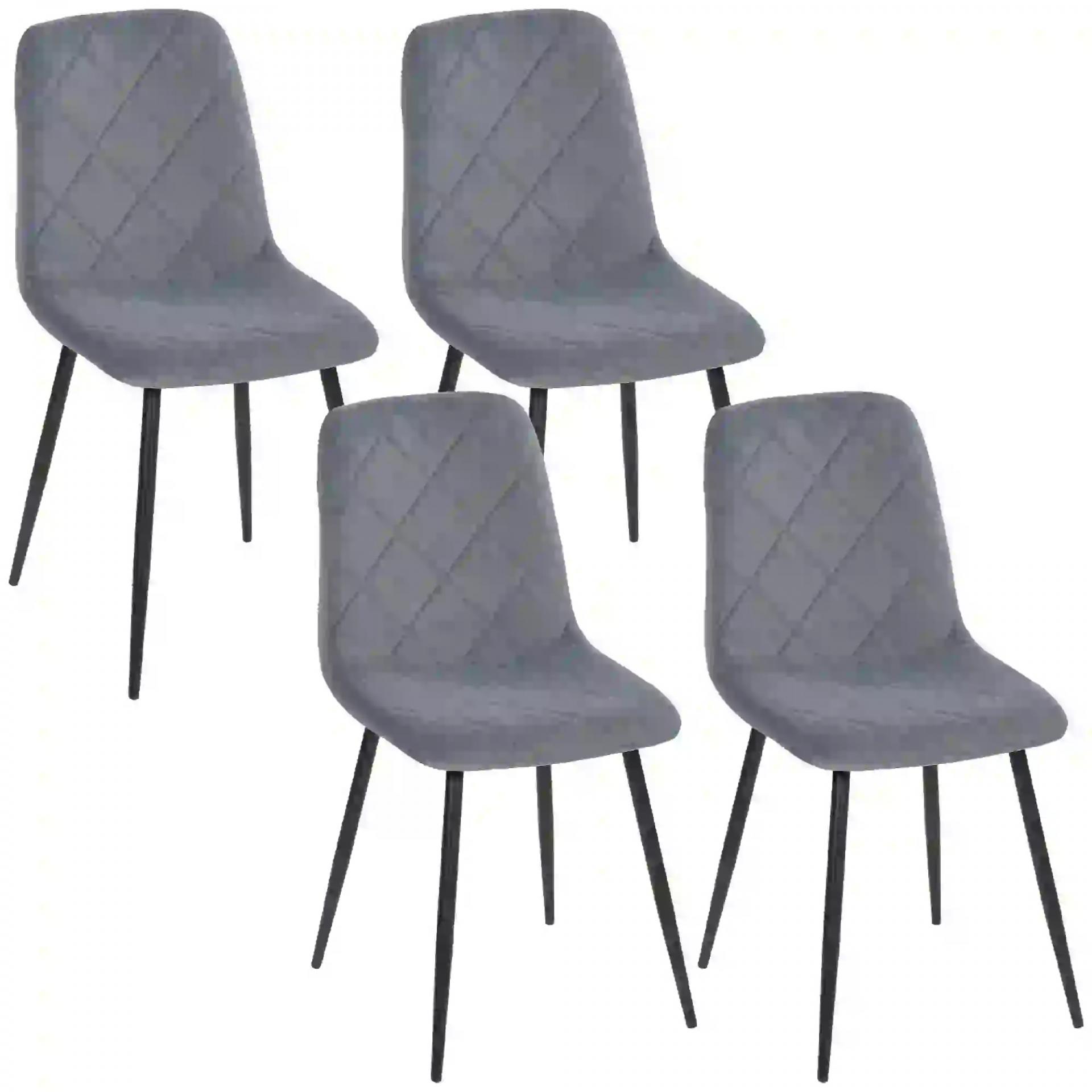 Juego de 4 Sillas de Comedor Tapizadas en Terciopelo con Patas de Acero para Salón 45x54x87 cm Gris