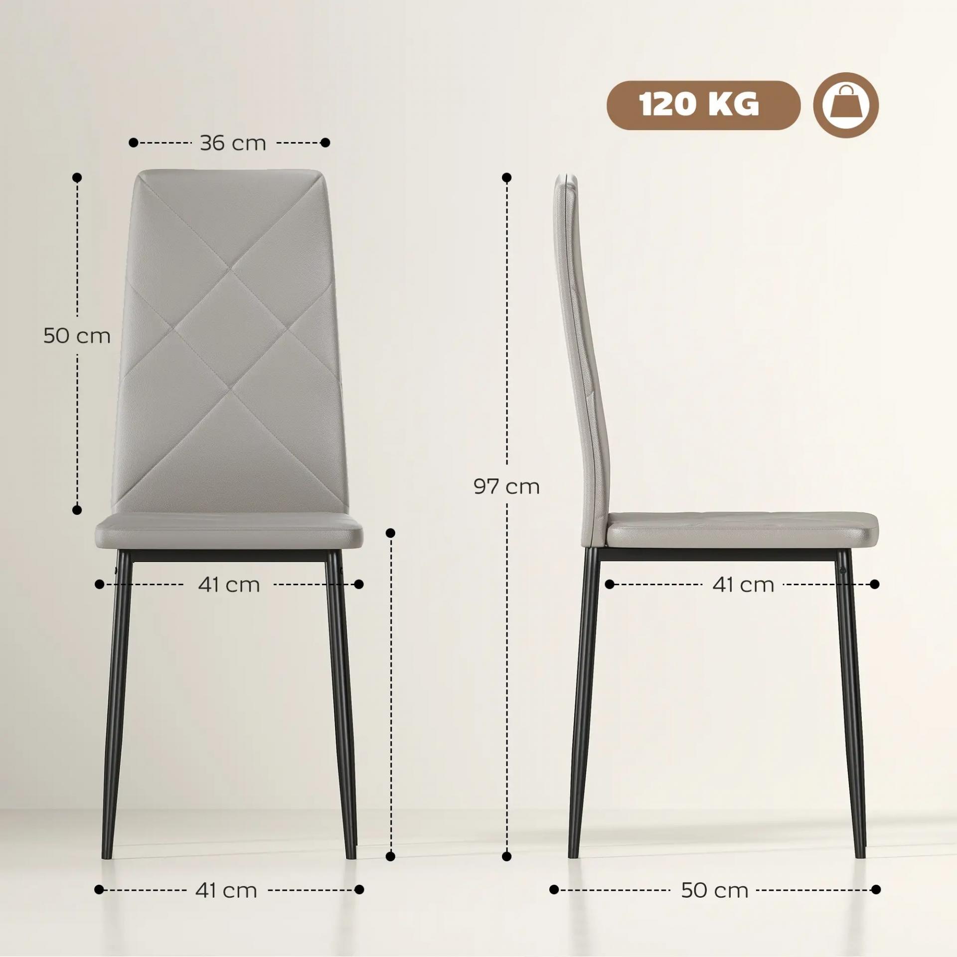 Set de 4 Sillas de Comedor Tapizadas de Piel Sintética con Respaldo Alto y Patas de Metal 41x50x97 cm Gris