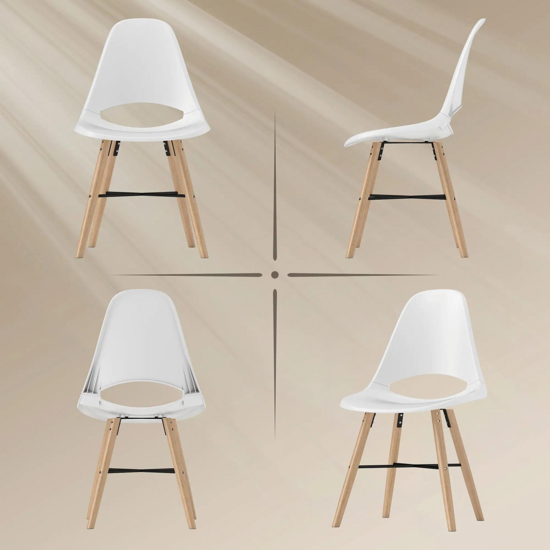 Pack de 2 Sillas de Comedor de Plástico con Respaldo Curvado y Patas de Madera de Caucho Blanco