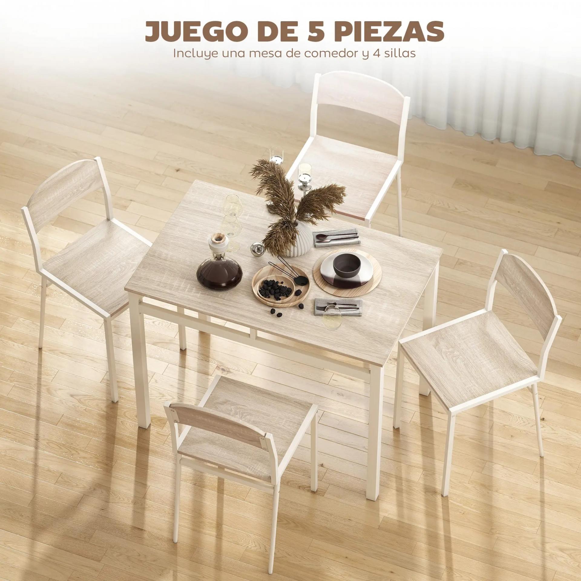 - VERSÁTIL Y PRÁCTICO: Este conjunto de mesa y sillas de comedor perfecto para desayunar, comer o cenar en familia, pero también para reuniones informales con amigos. Su estilo sencillo y actual se adapta a diferentes decoraciones, aportando calidez y funcionalidad al ambiente