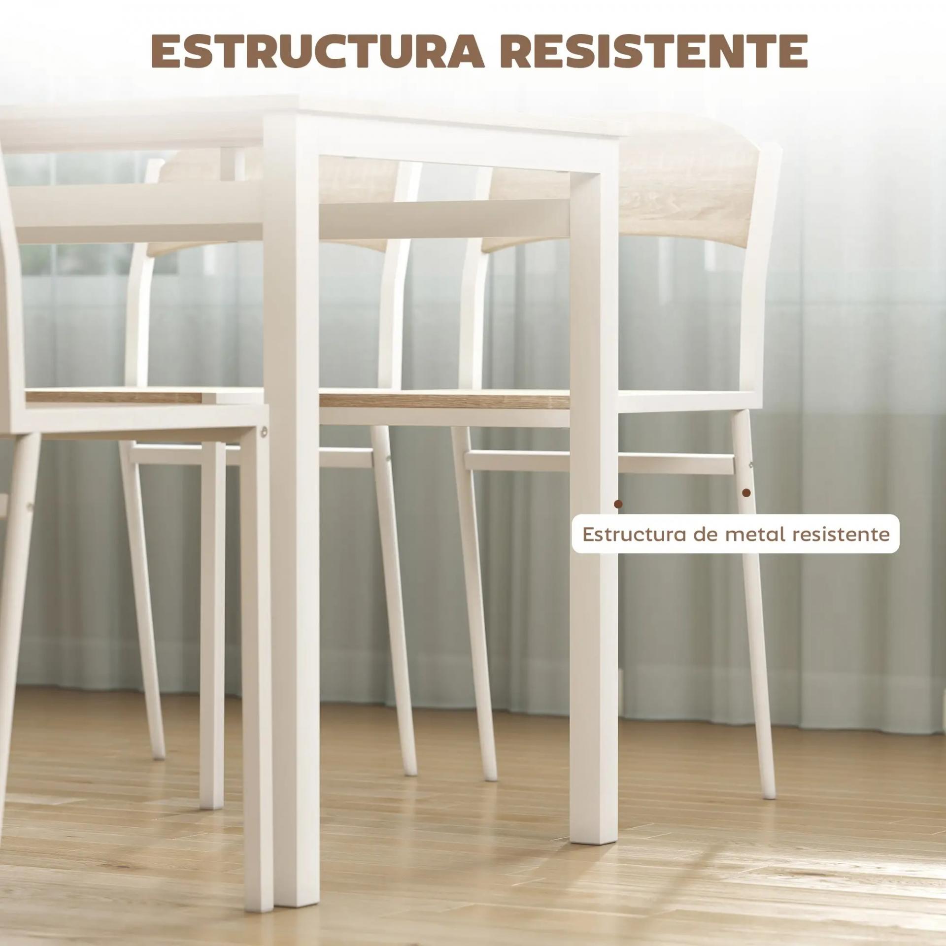 ESTILO MODERNO: Conjunto de mesa y 4 sillas con diseño actual que mezcla la calidez de la madera en tono roble claro con la firmeza del metal blanca. Un set de comedor elegante y funcional que encaja en cocinas modernas o comedores pequeños