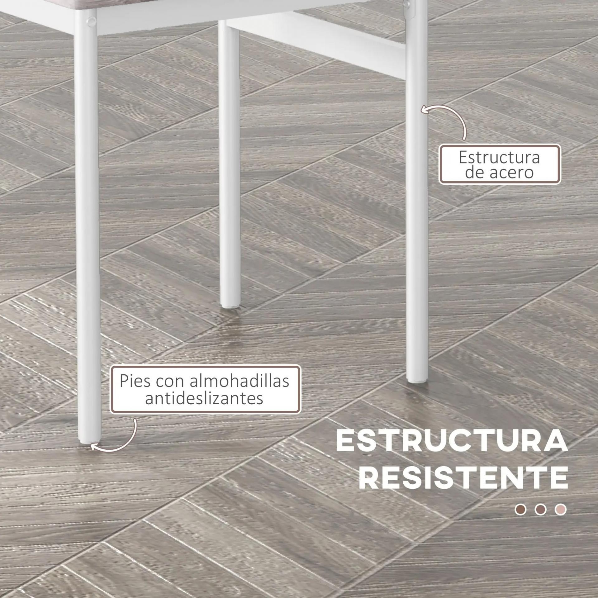 - ESTRUCTURA RESISTENTE: Esta mesa de cocina con sillas tiene una mesa con encimera de MDF y un marco de acero lo suficientemente resistente como para soportar 50 kg. Las sillas, por su parte, acolchadas y tapizadas en bonito y agradable tejido de lino sintético, pueden soportar hasta 120 kg cada una