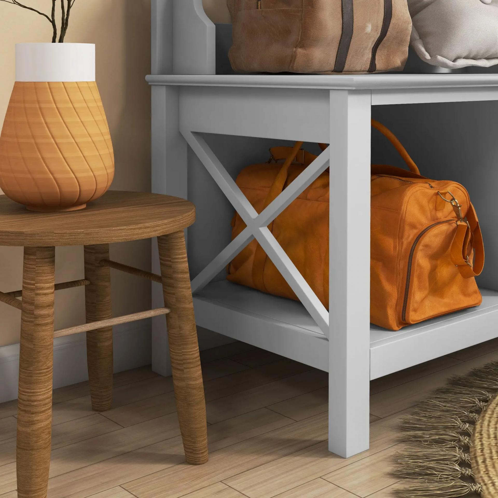 - ASIENTO TIPO BANCO: El asiento tipo banco de perchero zapatero puede soportar hasta 110 kg sin ningún problema, para que puedas sentarte cómodamente a ponerte los zapatos, ¡y empezar el día con buen pie!