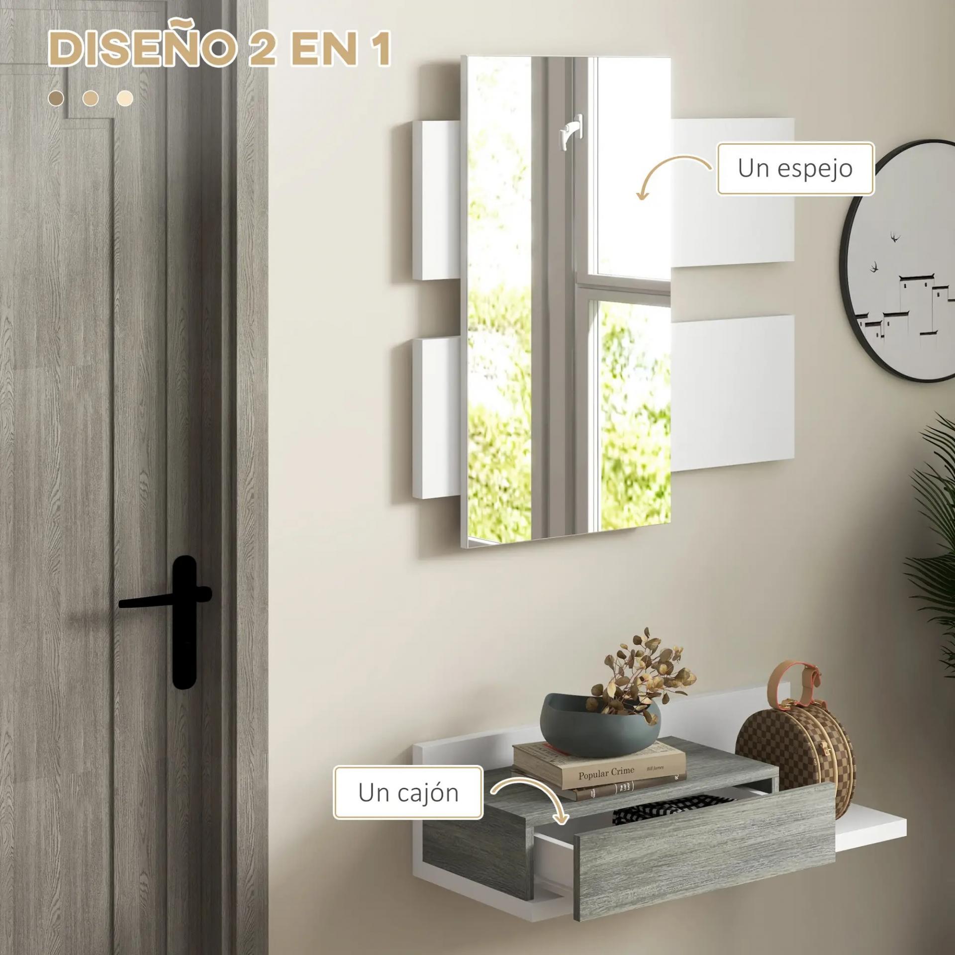 Juego de Muebles de Entrada Recibidor Colgante con Espejo y Cajón 75x3,5x75 cm y 75x30,5x20 cm Blanco y Gris