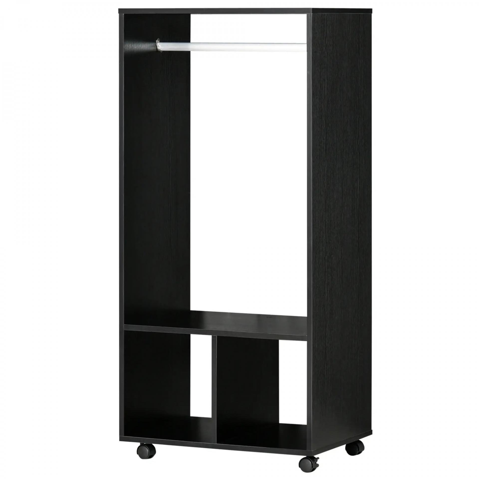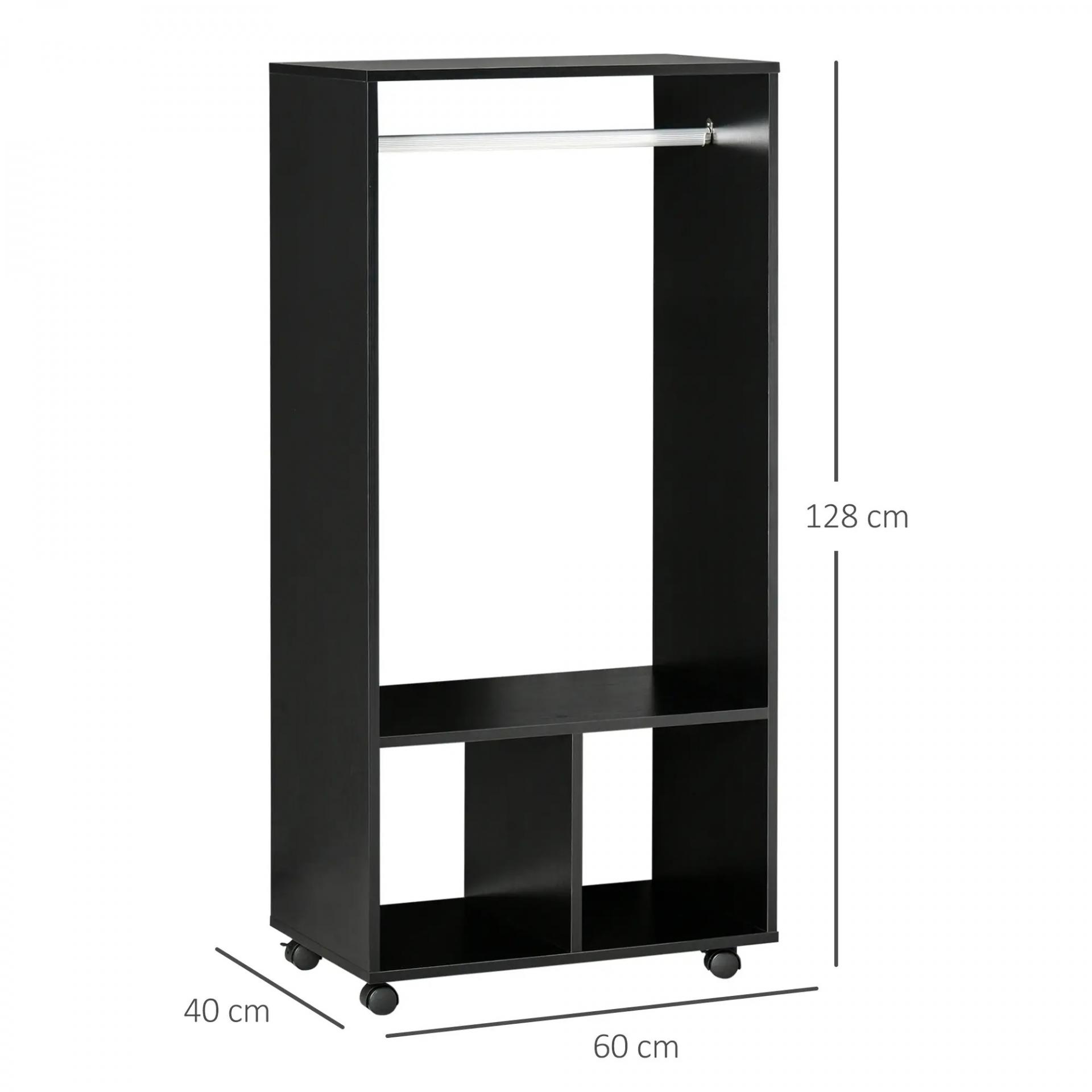 Armario Ropero con Ruedas Barra y Estantes para tener Ropa Colgada y Doblada 60x40x128 cm Negro