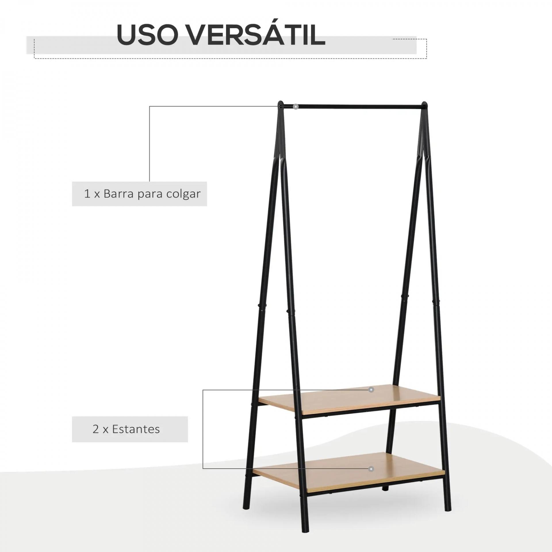 - DOS ESTANTES INFERIORES: Compuesto por una barra para colgar y 2 estantes en la parte inferior, este perchero ofrece un amplio espacio de almacenamiento. Los estantes son ideales para guardar ropa doblada, bolsos, zapatos y más