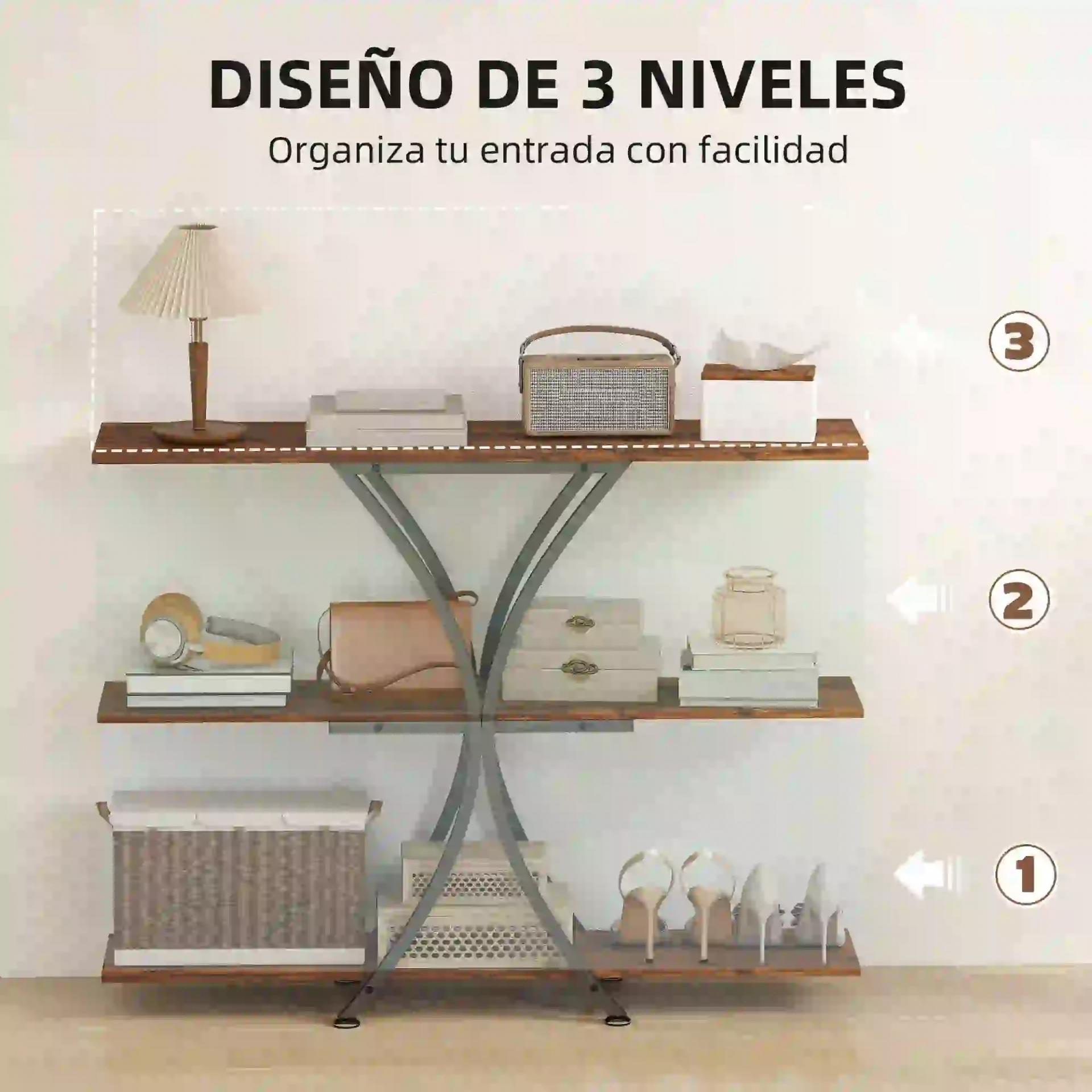 - DISEÑO ESTABLE Y SEGURO: La mesa consola de entrada está reforzada con estructura metálica en X, kit antivuelco y pies ajustables, lo que garantiza gran estabilidad y seguridad para un uso diario sin preocupaciones