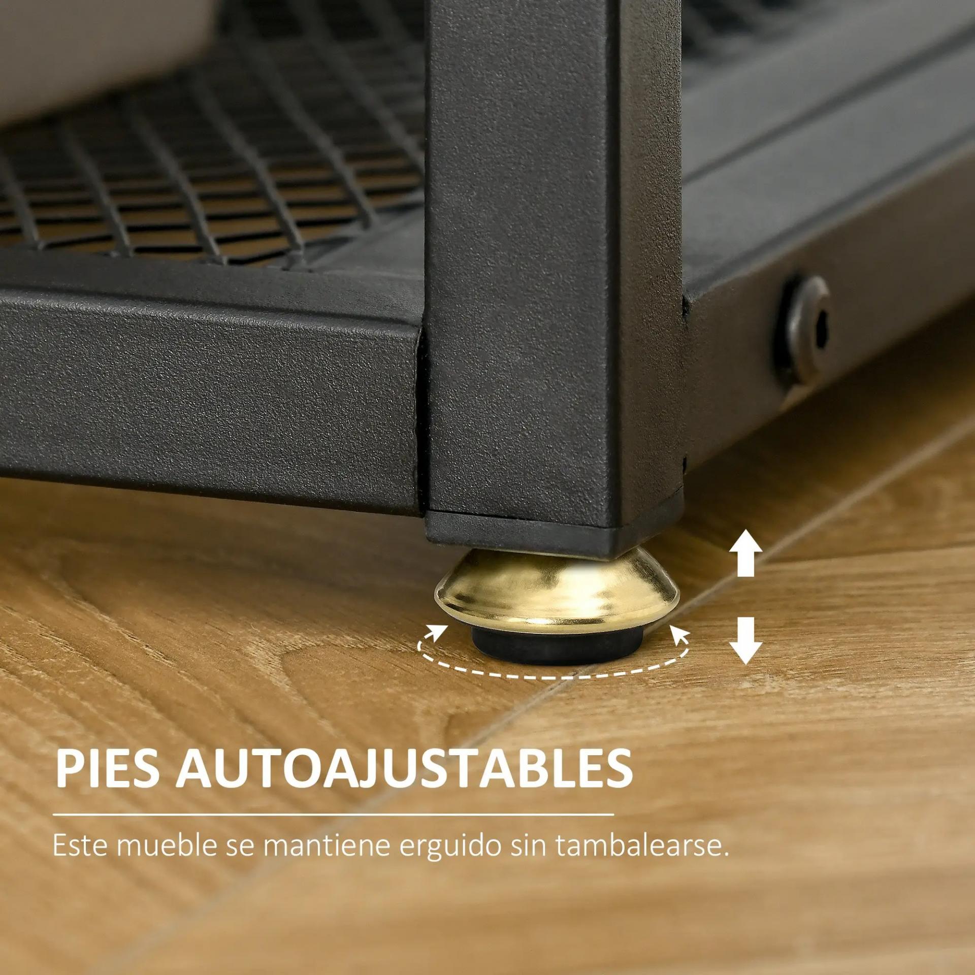 - ESTRUCTURA DE METAL: Esta consola recibidor estrecha está fabricado con un marco principal de metal resistente y con protecciones para los pies ajustables para evitar rayar el suelo. También tiene un estante intermedio de madera que se puede usar a modo de cajón, ya que tiene los bordes elevados aunque no queda el contenido oculto
