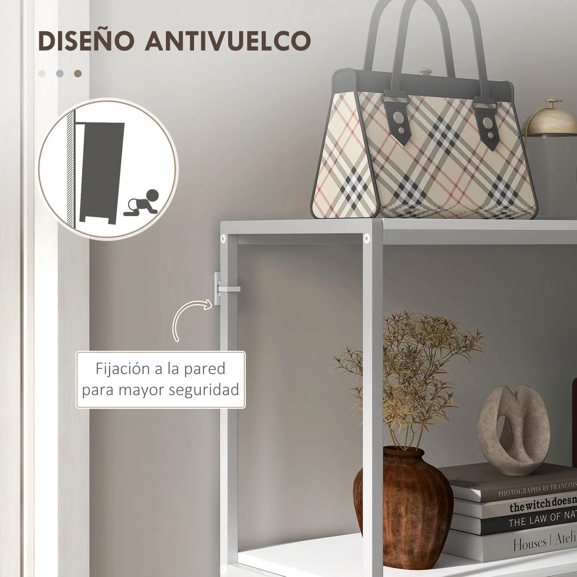 Mesa de Entrada con Estante Abierto y Estructura de Acero Antivuelco para Salón Pasillo 100x30x87 cm Blanco