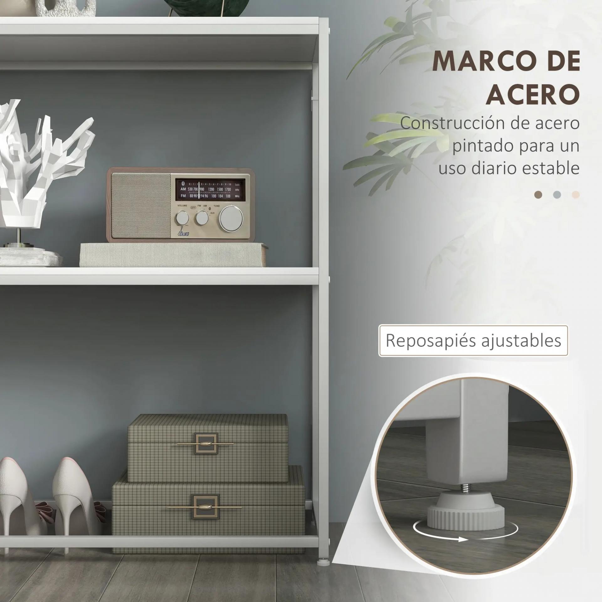 - MEDIDAS TOTALES: 100x30x87 cm (LxANxAL). Peso máximo soportado: 20 kg (total), 10 kg (estante). Se requiere montaje