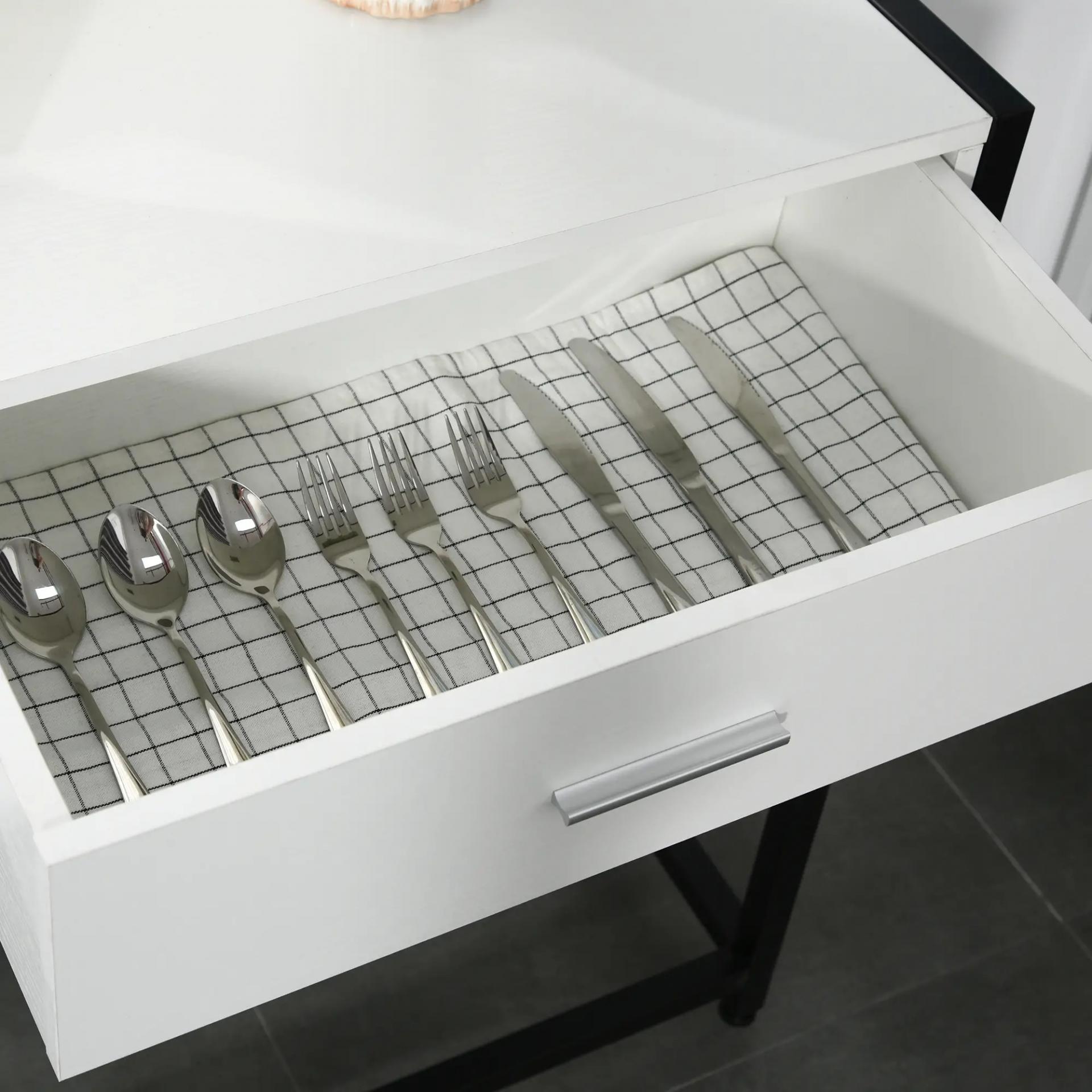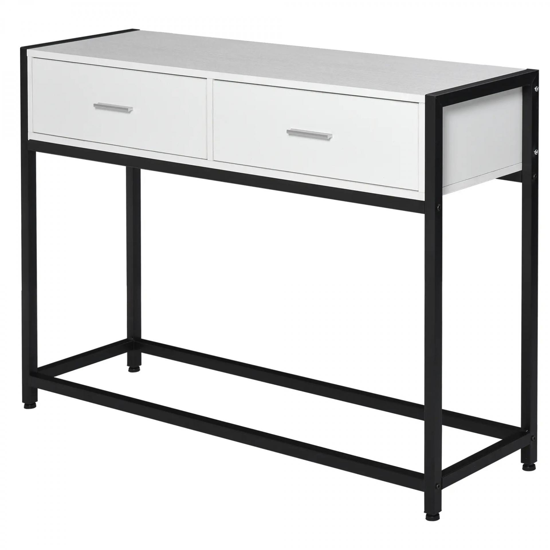 - ESTRUCTURA RESISTENTE: Mesa de recibidor con estructura de metal reforzado y cuerpo del mueble con 2 cajones y amplia encimera de melamina de madera en acabado de color blanco. Es un mueble resistente y con buena capacidad de carga, pudiendo soportar hasta 50 kg