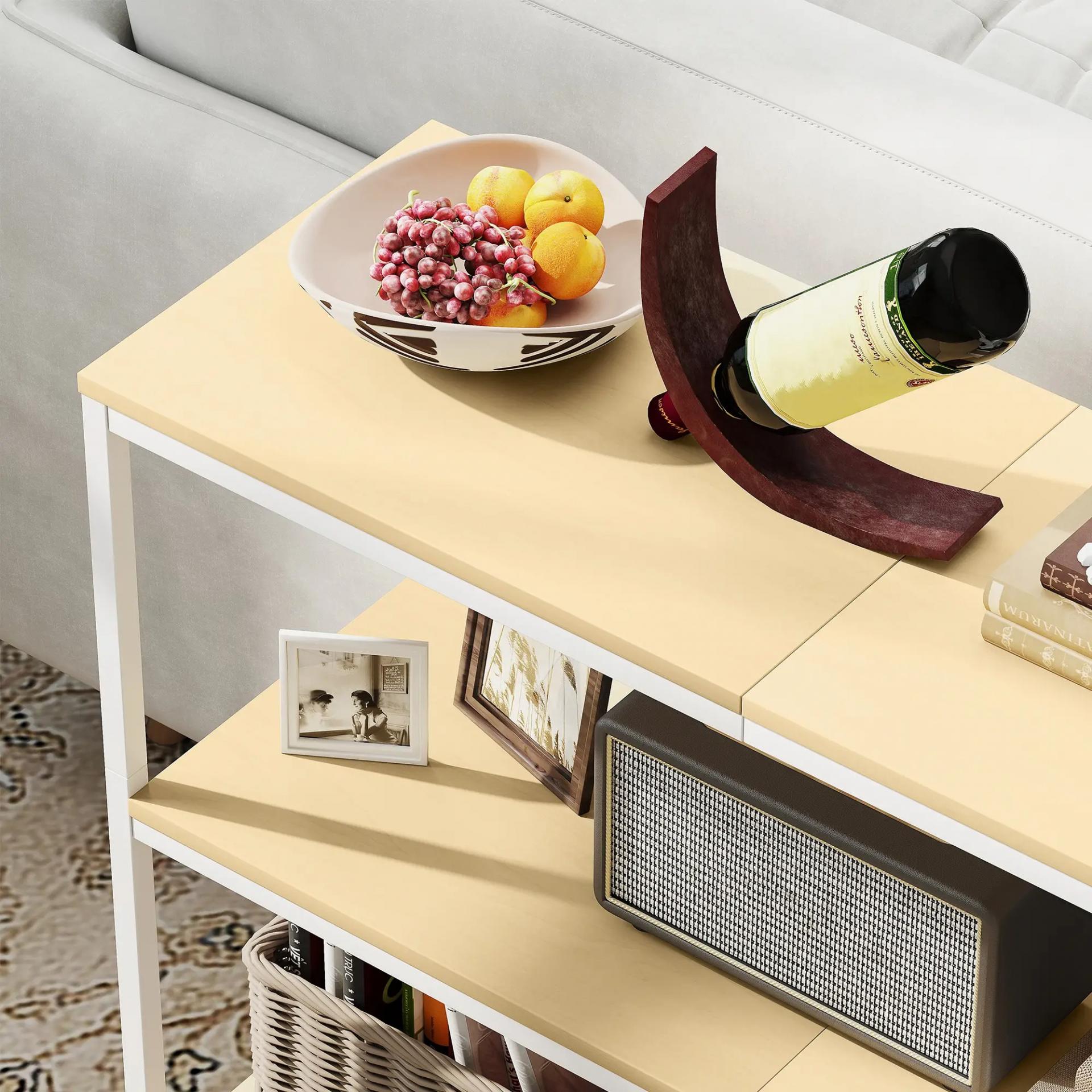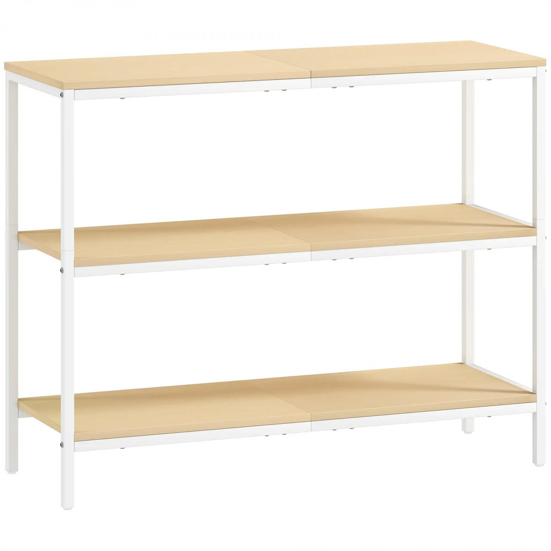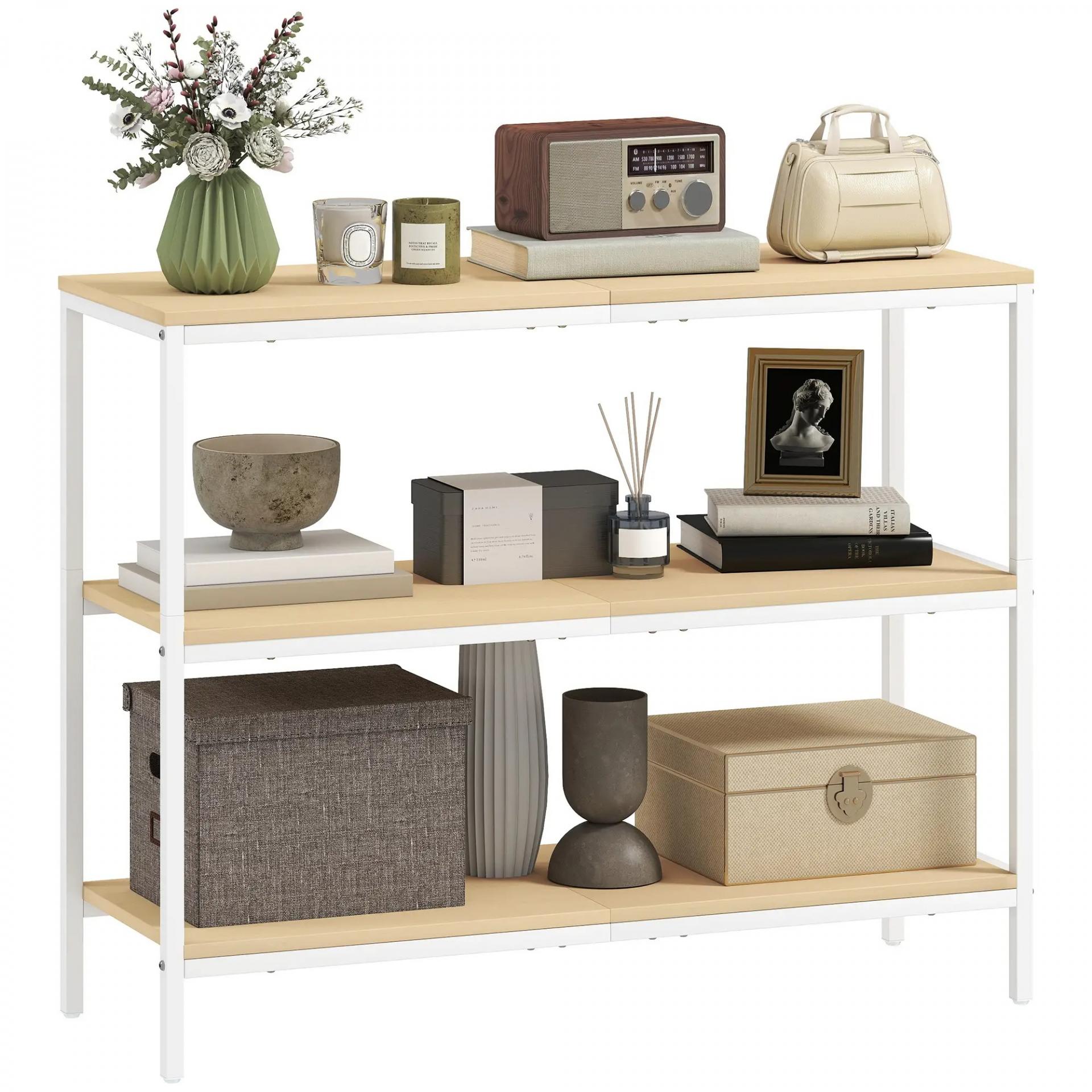 Consola de Recibidor con 3 Estantes Abiertos y Patas de Metal para Pasillo Entrada Salón Dormitorio Natural y Blanco