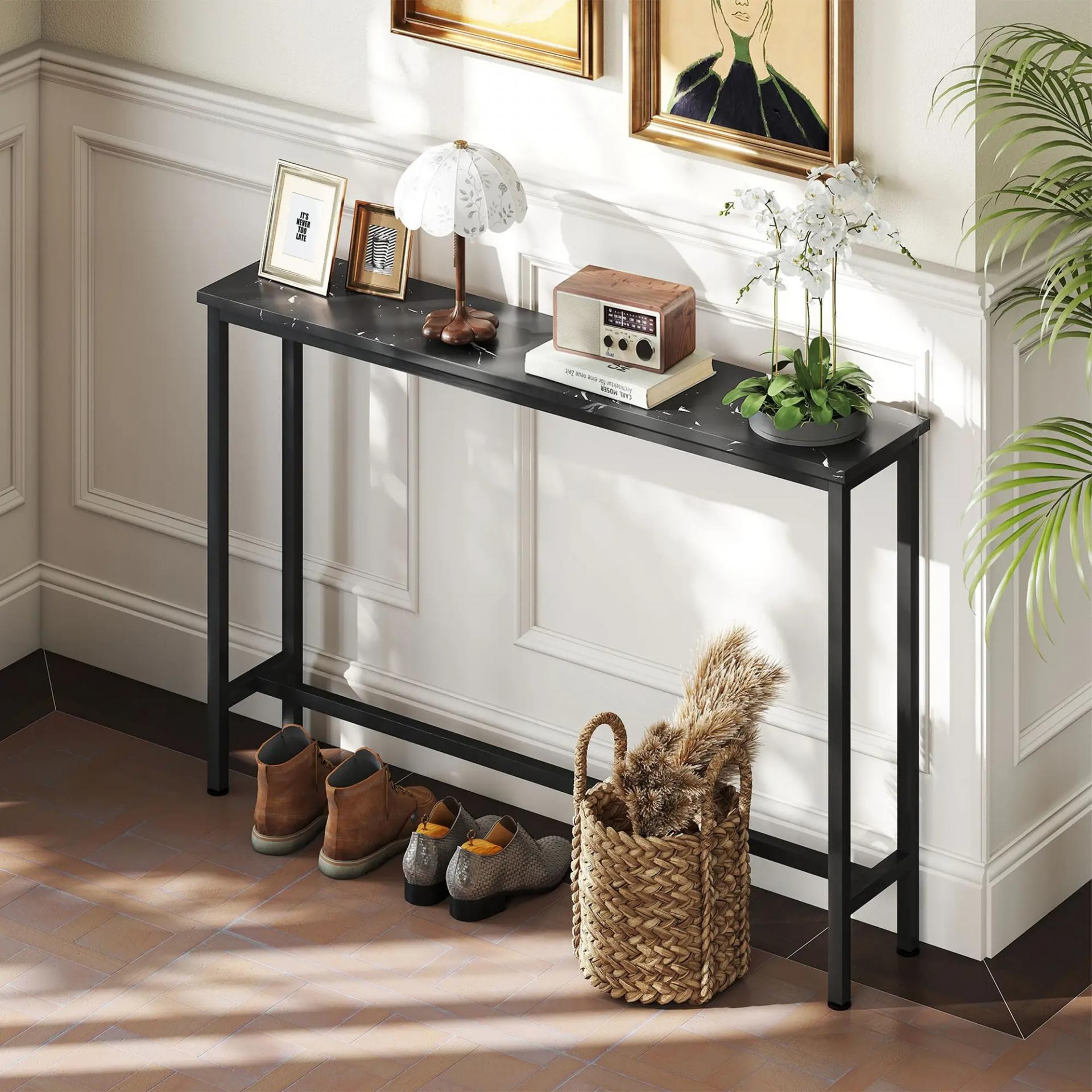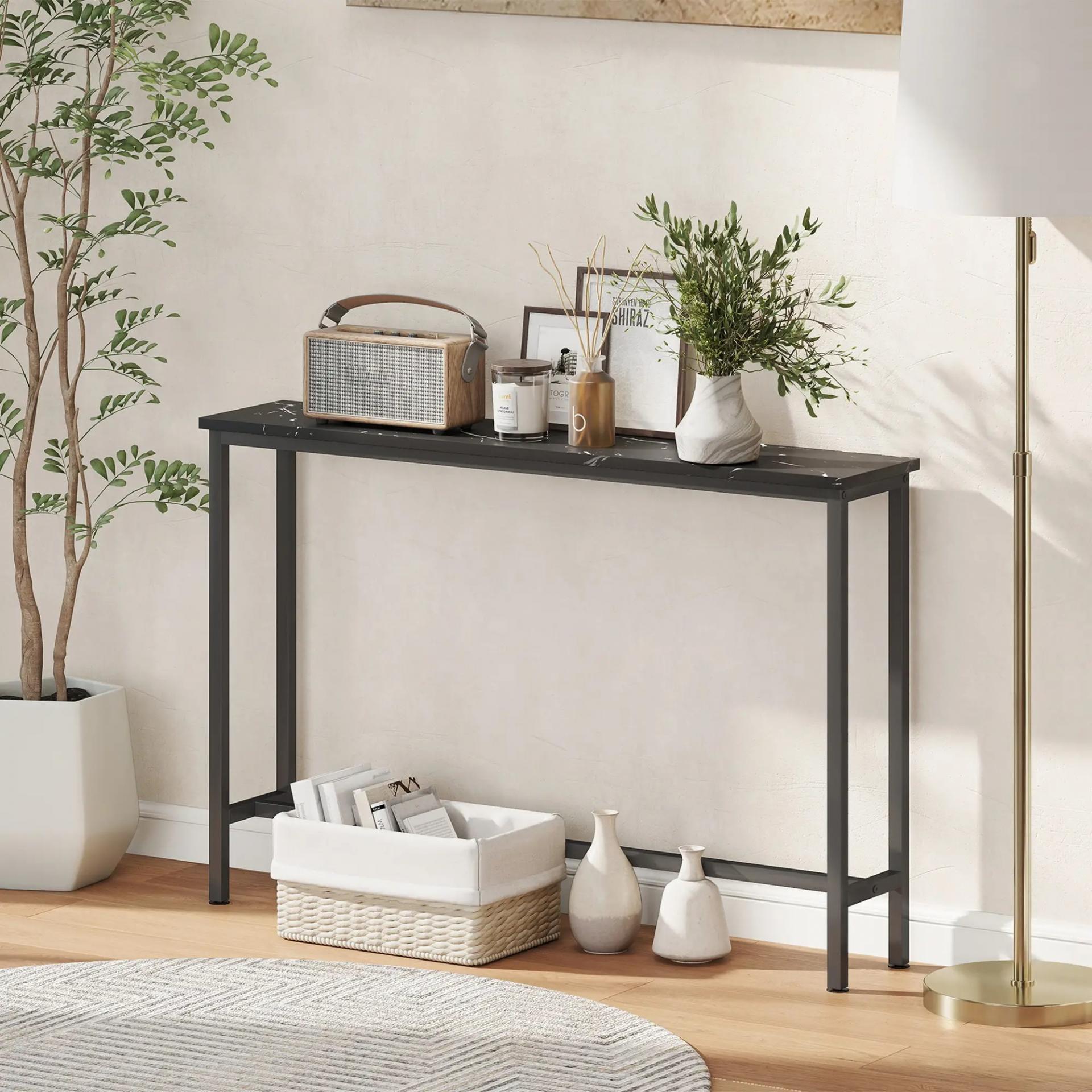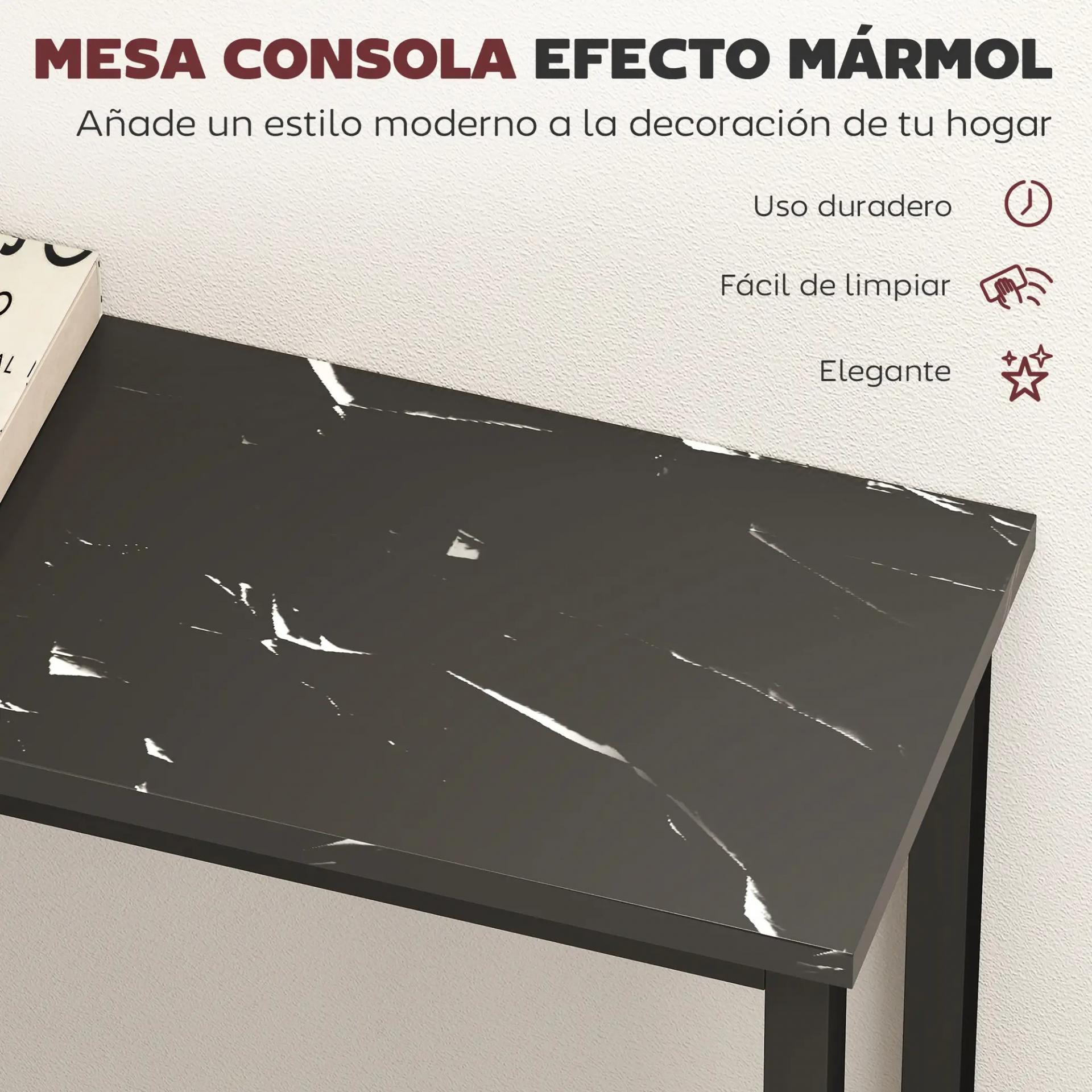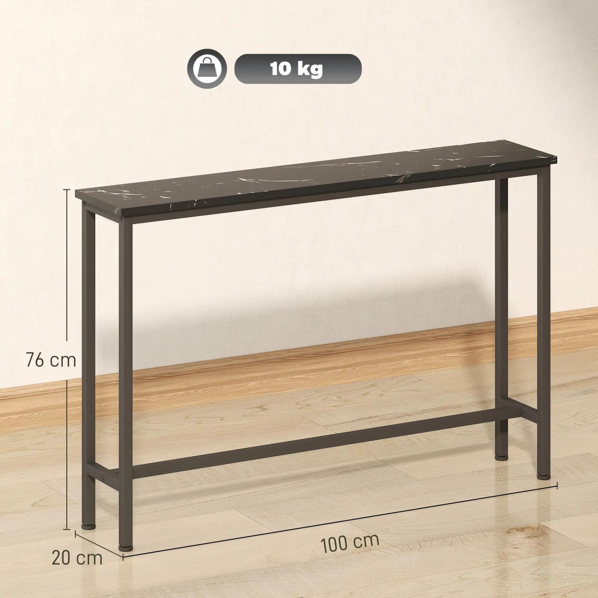 Consola Recibidor Estrecha con Superficie con Efecto Mármol y Marco de Metal 100x20x66 cm Negro